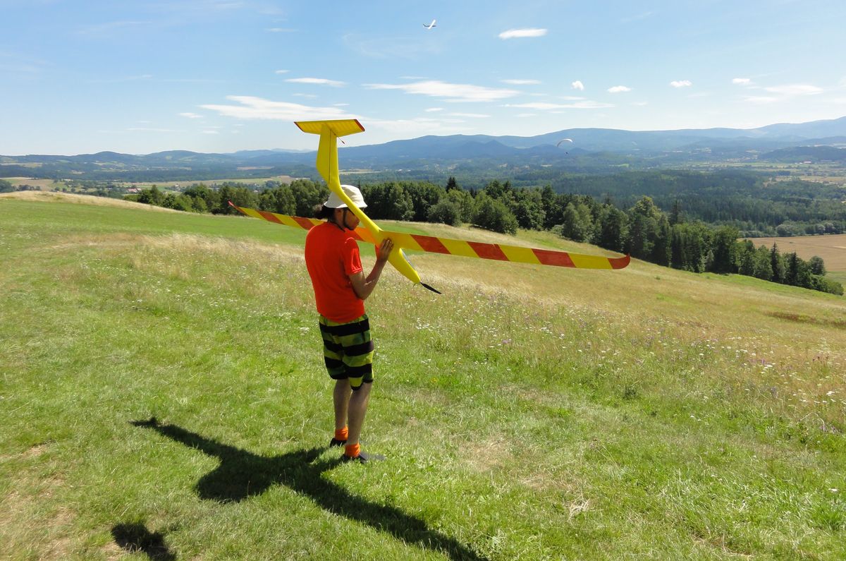 Złożyliśmy modele, polataliśmy prawie godzinkę. Paralotnie startowały z 6÷8 razy (odchodziliśmy na bezpieczną odległość), był jeszcze jeden modelarz, dzień był słoneczny i upalny