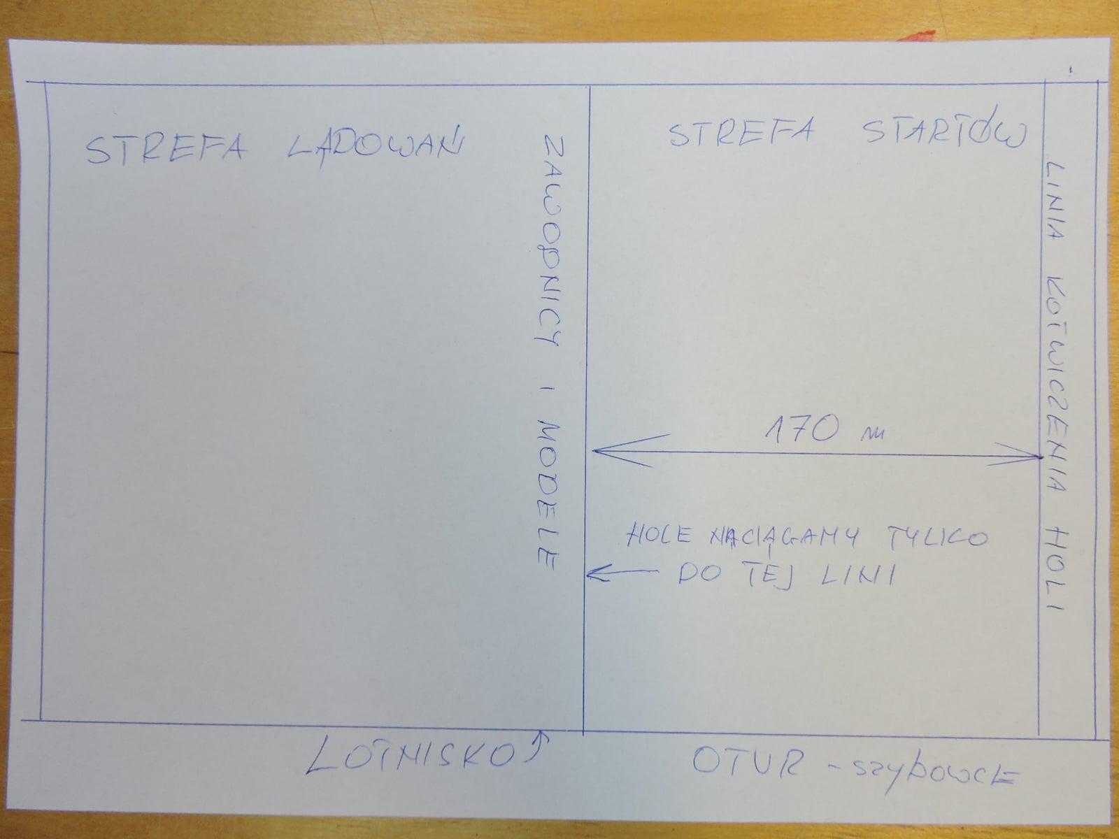 - hole gumowe naciągane są tylko do 170 metrów i nie wolno przekroczyć linii odgraniczającej strefę startów od strefy lądowań/zawodników,