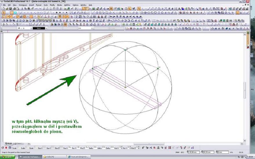 Posiadam małe doświadczenie w TCAD-e, więc mój sposób na obracanie i przesuwanie brył może okazać się "kombinacją alpejską". Ja poradziłem sobie z obracaniem "klocków" przy pomocy sfery, jaka pokazuje się podczas aktywacji-podświetleniu obiektu w 3D. Są tam trzy osie X,Y,Z. Klikając na zielonych punktach końcowych osi stawiałem do pionu elementy. W ogóle można obracać je jak się chce.