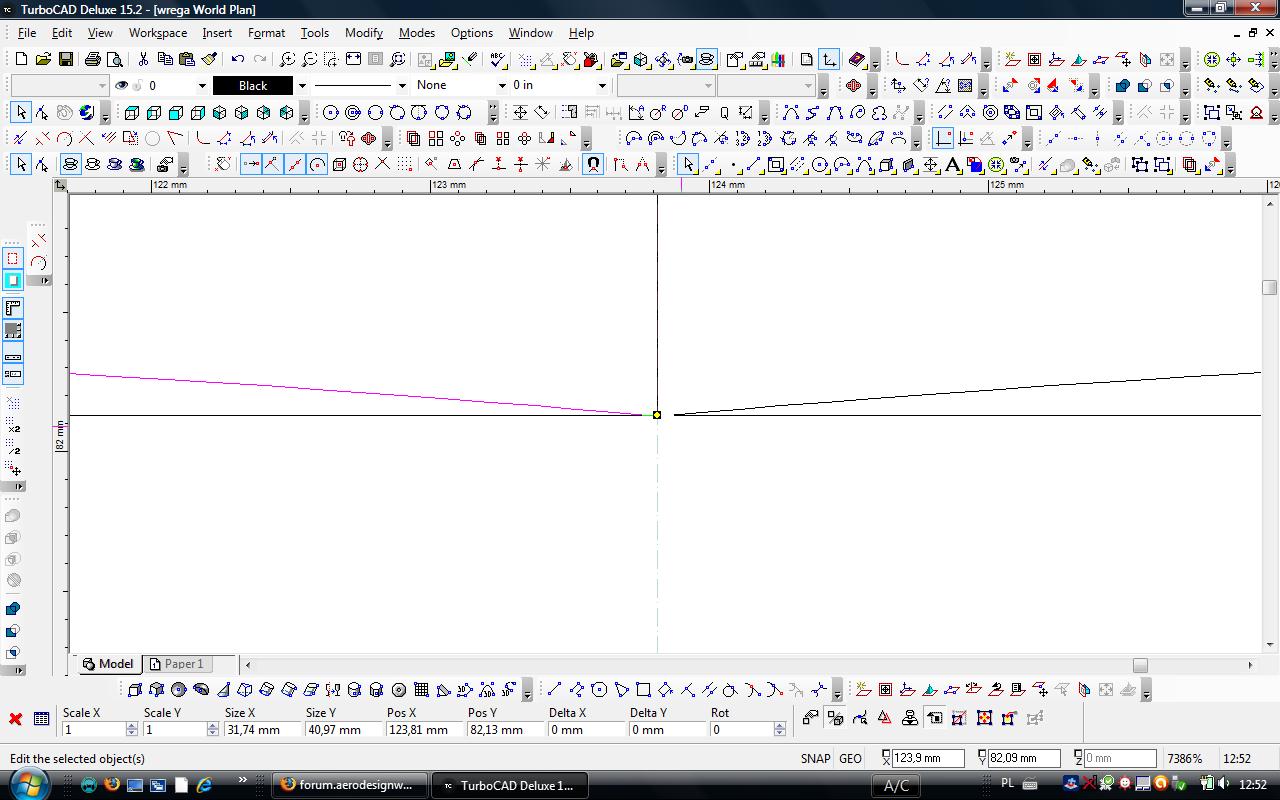 Potem wyłączamy "No Snap" i klikamy na linię konstrukcyjną poziomą umieszczając ją na samym dole wręgi.