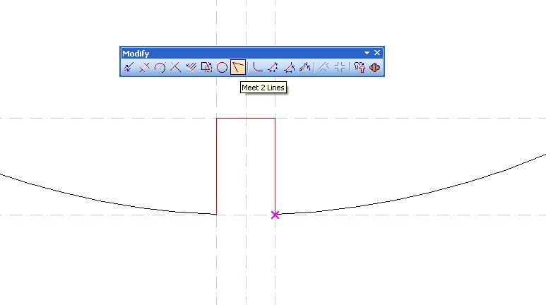 Teraz za pomocą Meet 2 Lines łączymy krzywą wręgi z wcięciem. Uwaga, czasem wyskakuje komunikat o niemożności połączenia linii. I wtedy albo połączymy ją w powiększeniu albo rozbijamy cały rysunek funkcją EXPLODE a po połączeniu całość wiążemy Join Polyline.