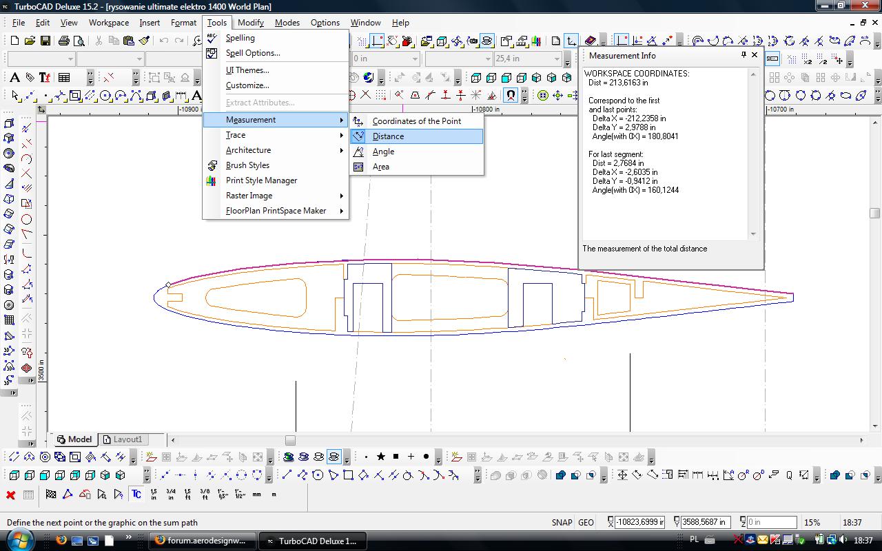 Szczepan, podsunąłeś mi jedną myśl i w TC też jest to banalnie proste, można zmierzyć dowolną krzywą czy obwód nieregularnego elementu. :D Odpowiednie funkcje włącza sie prawym myszy klikając na interesujący nas obiekt.