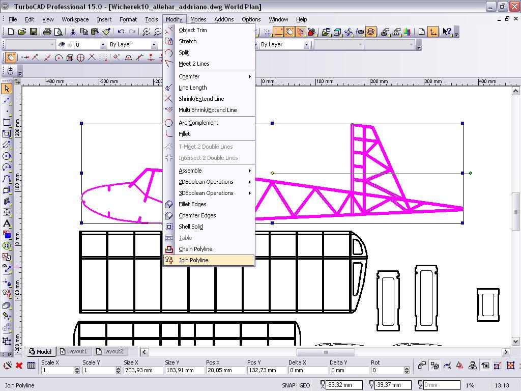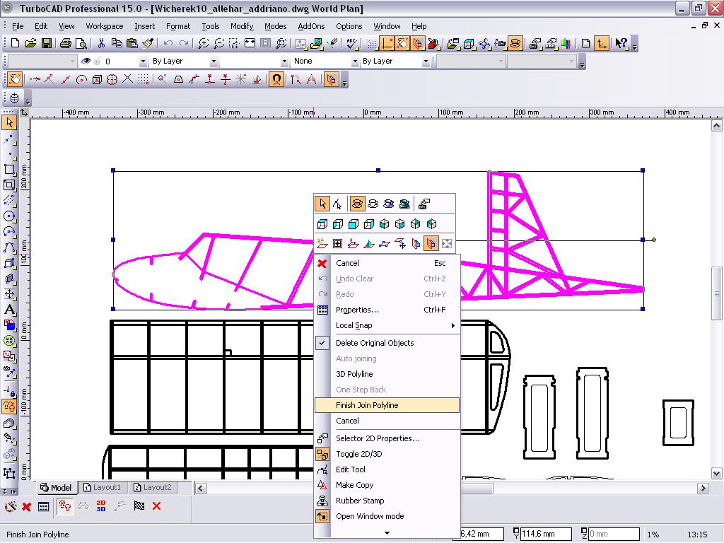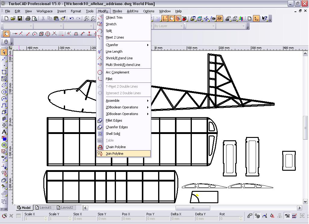 Mam problem z tą funkcją, staram się połączyć kadłub w całość i przejść do 3D ale widocznie nie potrafię korzystać z tej funkcji