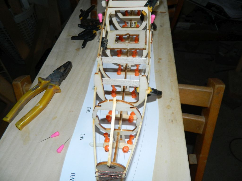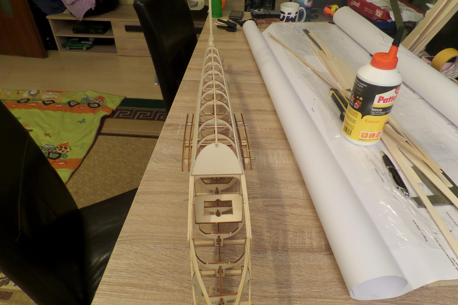 Po drugie, na listwie kilowej porobiłbym wpusty, spowoduje to bardziej precyzyjne ustawienie wręg.