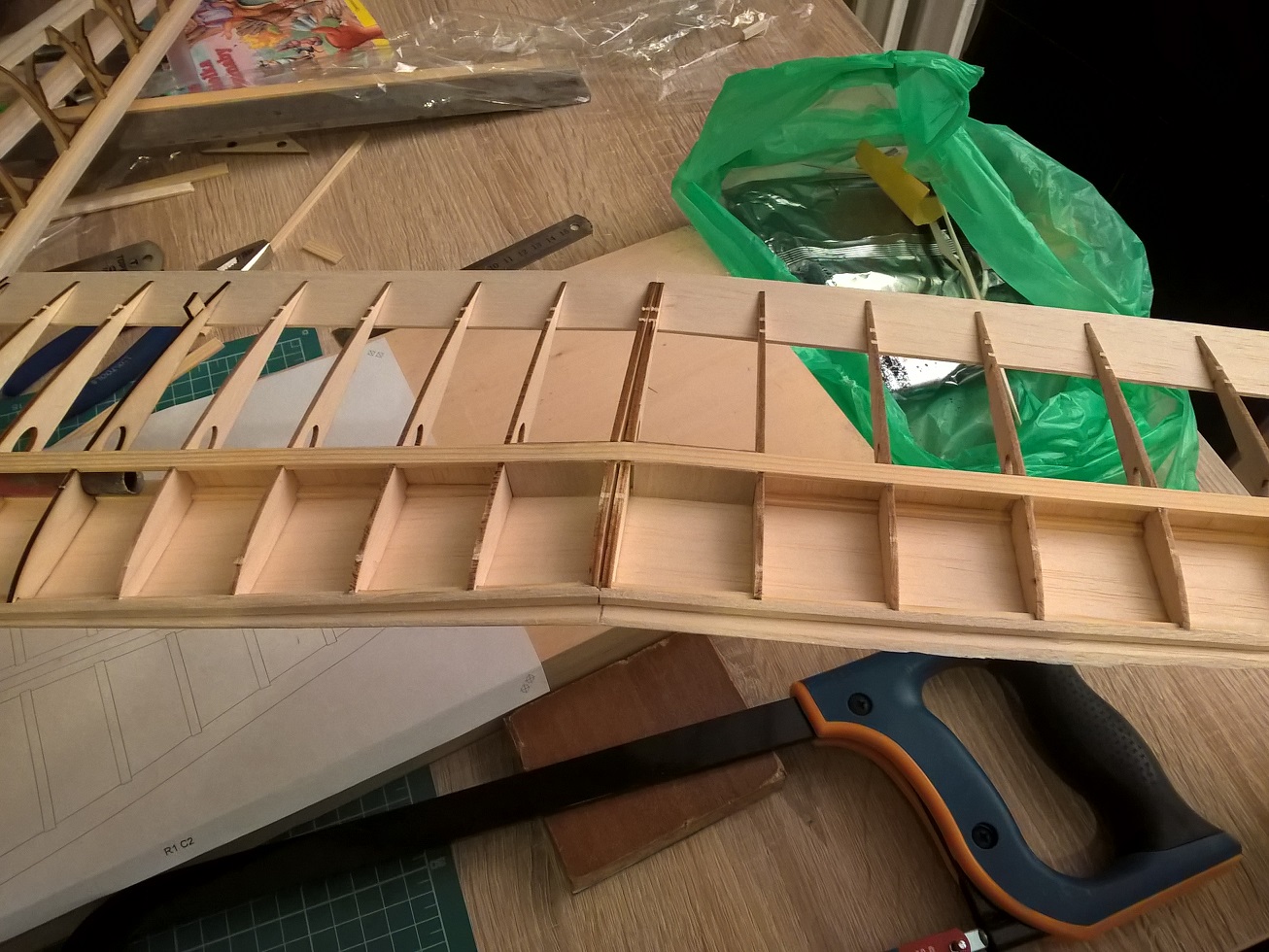 Rozpocząłem dziś budowę skrzydła. Długo zastanawiałem się jak to zrobić.