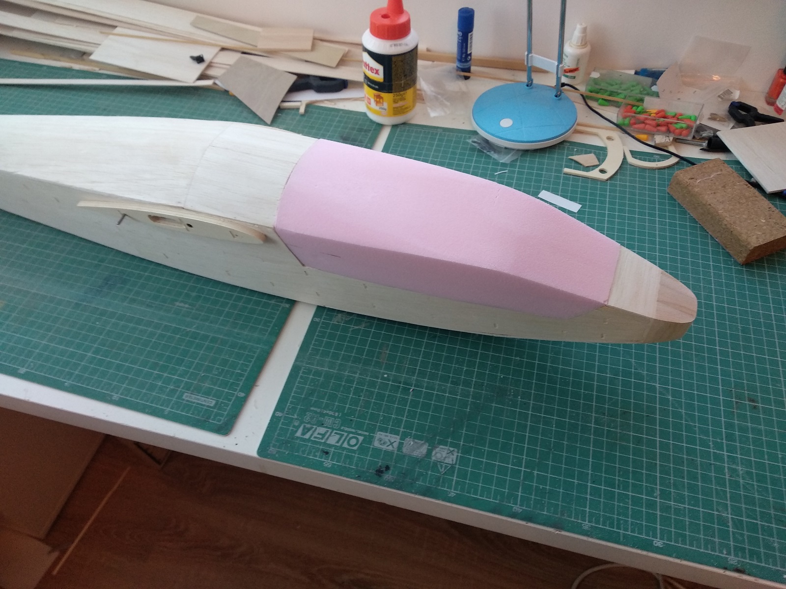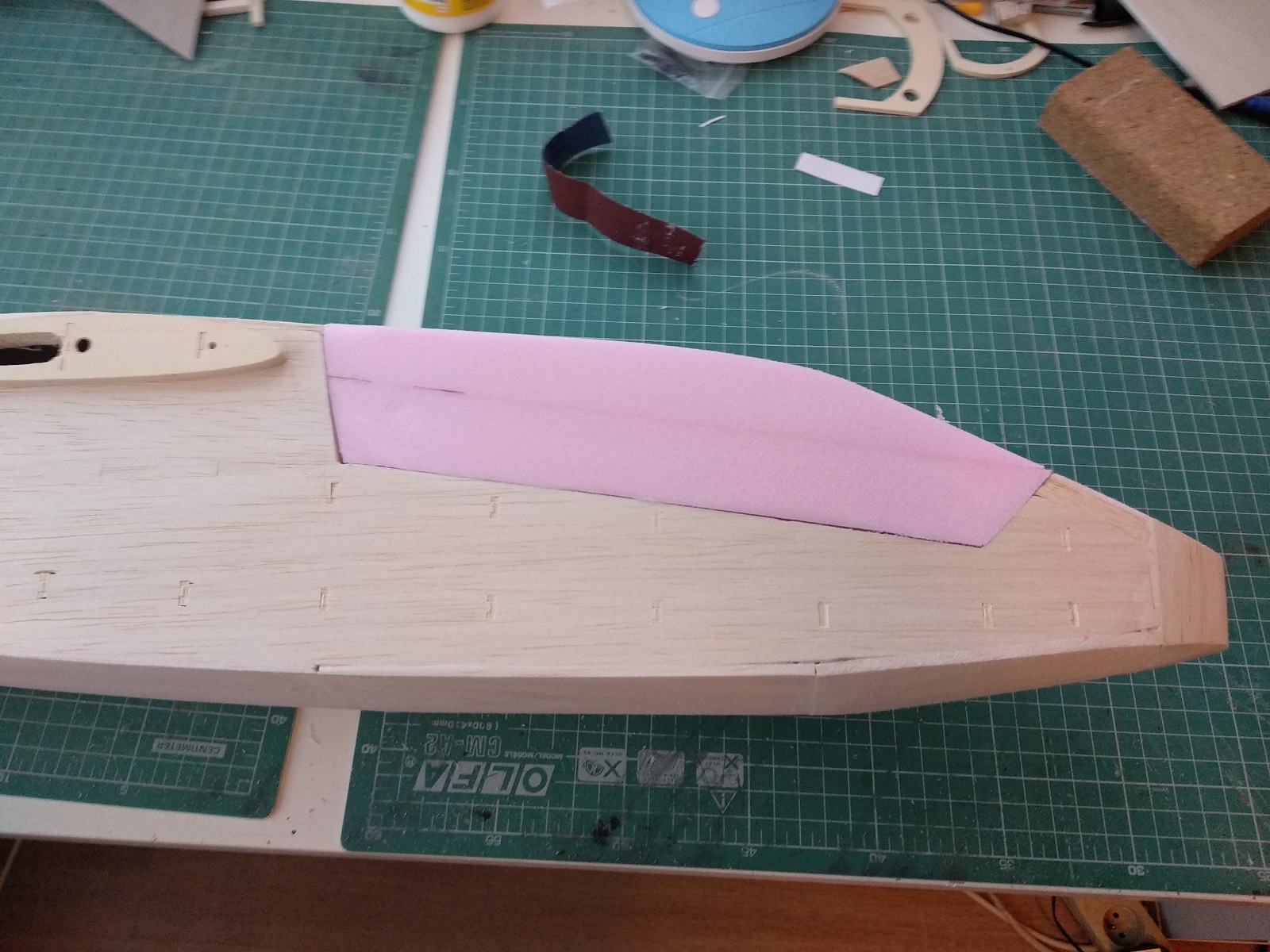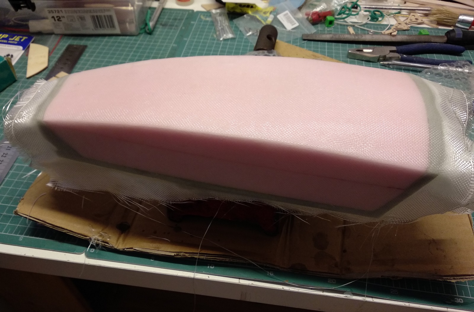 Zacząłem od laminowania tkaniną 130g na Eze-kote średnio wyszlifowanej balsy.