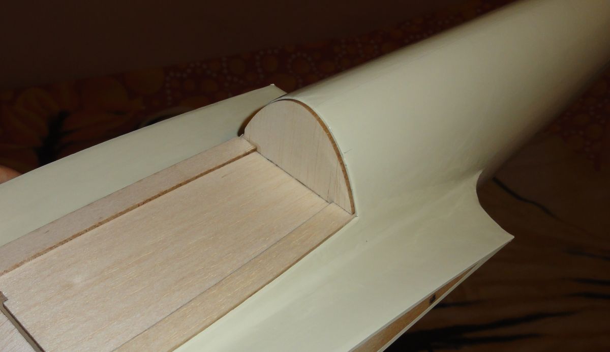 W końcu zabrałem się za kadłub. Oklejanie powierzchni nierozwijalnych skutecznie mnie zniechęcały do pracy... Okleiłem statecznik, później tydzień przerwy i tak w koło ;)