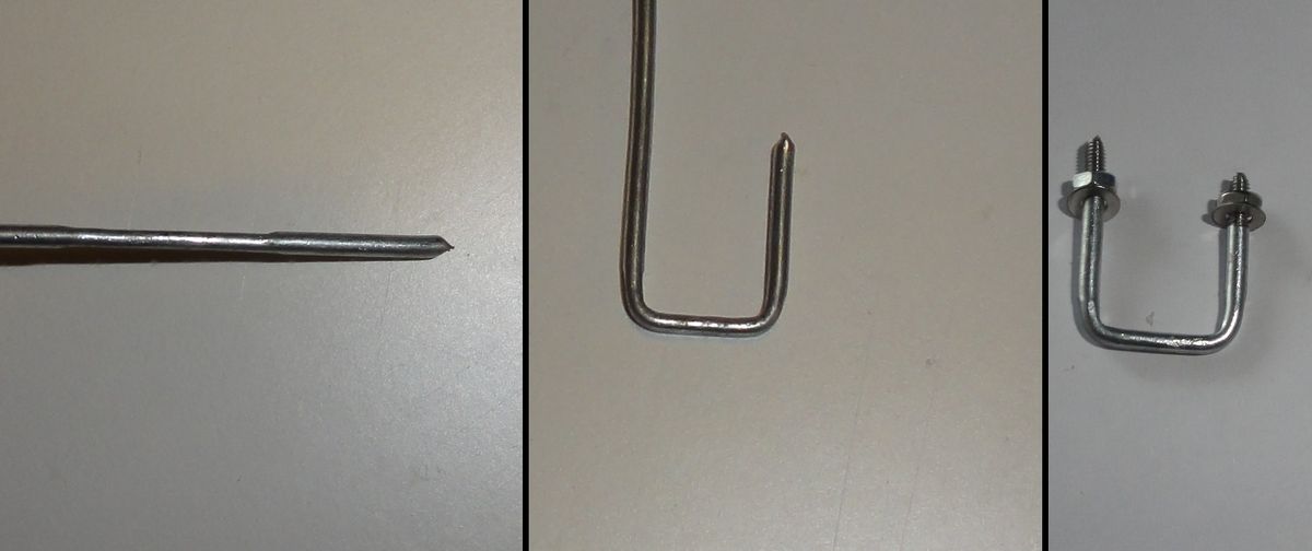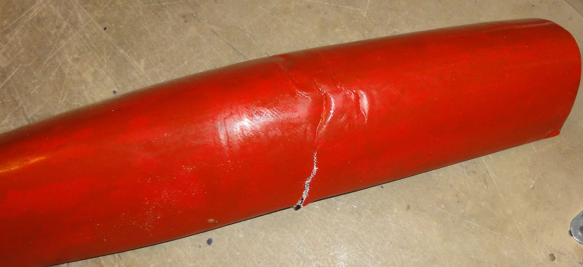 Płoza tylna z płaskownika z nierdzewki. Przyklejona i przeszyta: