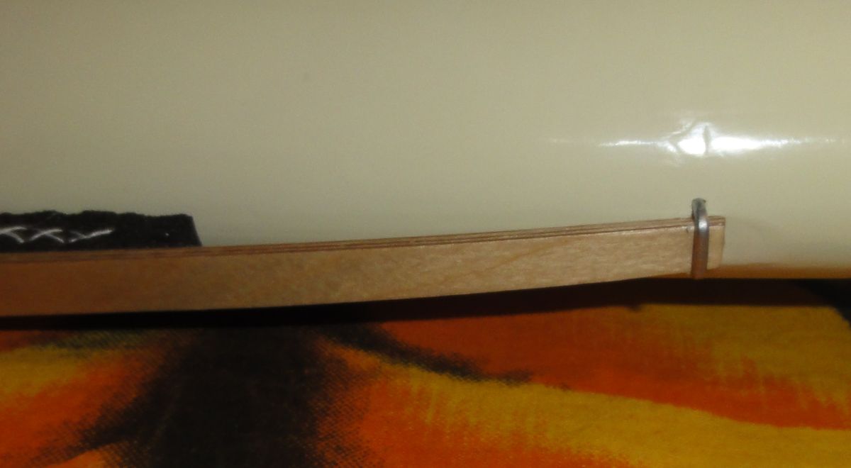 Płoza z przodu przykręcona dwoma śrubkami. Z tyłu, przesuwnie na elemencie z drutu aluminiowego (amortyzacja):