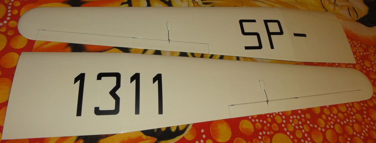 Wymyśliłem, że kadłub da się okleić na znacznej części z jednego arkusza. Najpierw okleiłem statecznik i przejście, później skrzydła / centropłat wraz z przejściami, płozę ogonową a na końcu resztę już z jednego arkusza. Tylna część jest jakby owalnym stożkiem więc nie było aż tak dużego problemu. Problem pojawił się gdy przód zaczął się zwężać. W miejscu gdzie będzie płoza z przodu, rozciąłem folię, na jednej połówce zostawiłem papier i tak męczyłem się żeby fałdek za wiele nie wyszło. W pewnym momencie, gdy kadłub był pionowo, dziobem w górę, połówka z papierem odkleiła się (była na taśmie), opadła i powiększyła nacięcie folii o jakieś 60 mm rozrywając się zygzakiem lekko na bok :twisted: Do tego w żelazku przepalił się drut oporowy i po 1,5h walki odłożyłem kadłub. Na drugi dzień, gdy zobaczyłem w świetle dziennym jak mi wyszło - to tragedia. Fałdy, załamania - tra-ge-dia :shock: Aż mi się kolejne parę dni nie chciało patrzeć na robotę ;) Na szczęście stan foli był jeszcze przed końcowym naciąganiem więc po nabyciu nowego żelazka dokończyłem robotę. Nie wyszło idealnie, acz akceptowalnie. Największą trudnością było mocowanie folii na wklęsłych powierzchniach (przejście skrzydło-kadłub, kadłub-statecznik). Chyba lepiej robić to opalarką a nie żelazkiem.