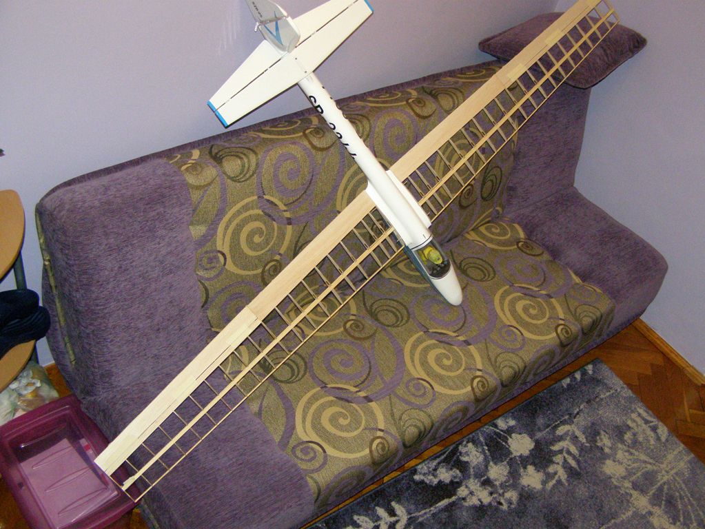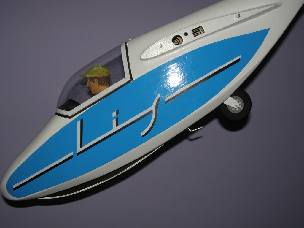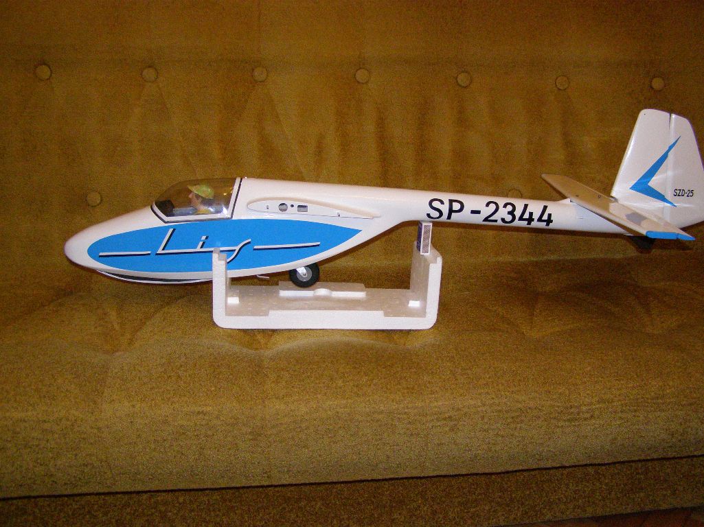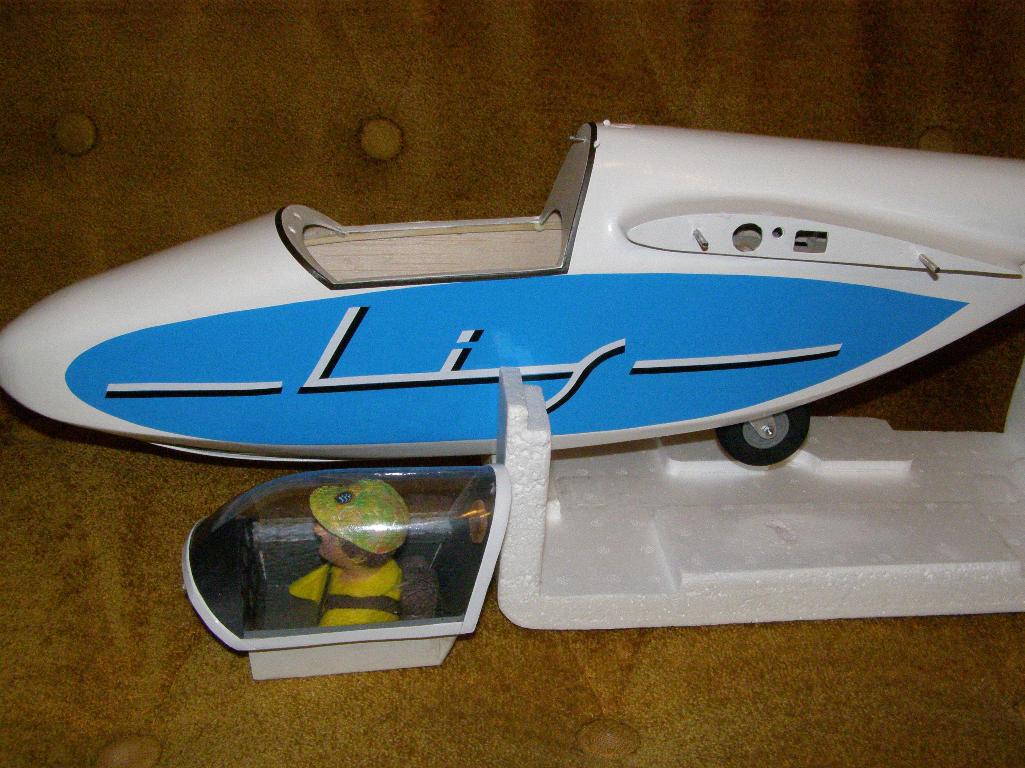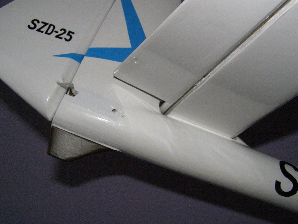 . Jednak nie trudno go będzie rozpoznać wśród innych szybowców. Oczywiście jest w barwach używanego w Aeroklubie Elbląskim. W kabinie obowiązkowo siedzi za sterami młody autor wątku w charakterystycznej kwiecistej czapeczce z froty. Kadłub tak jak w „Jaskółce”’, pokryty papierem japońskim, cellonowany i pomalowany lakierem nitrocelulozowym. Całość wykonana poniżej moich oczekiwań na trzy, też z niewielkim plusem. Z lenistwa dałem ciała nie do końca przygotowując powierzchnię
