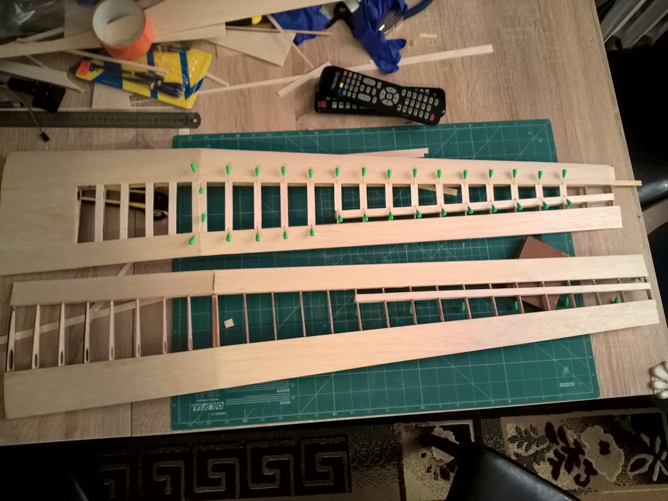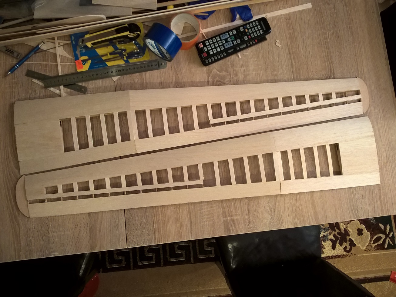 Na uwagę może zasługiwać waga, otóż przed nakładkami płaty ważyły 94 gramy każdy, faktem jest, że dobierałem balsę.