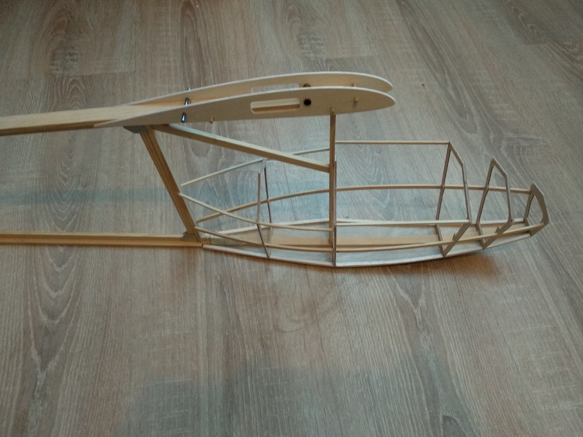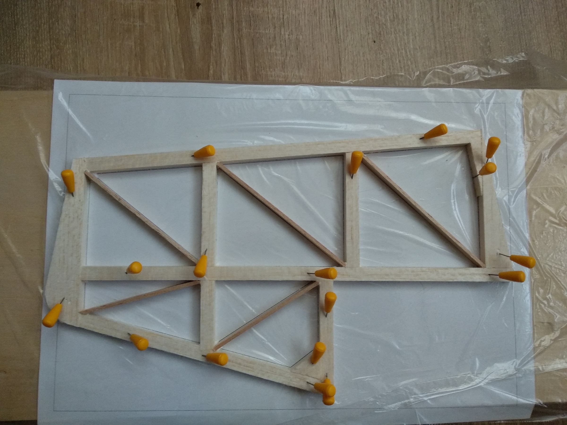 Jest ok, więc kleimy, wpierw typowo klejem do drewna oba żeberka nasadowe do kadłuba.