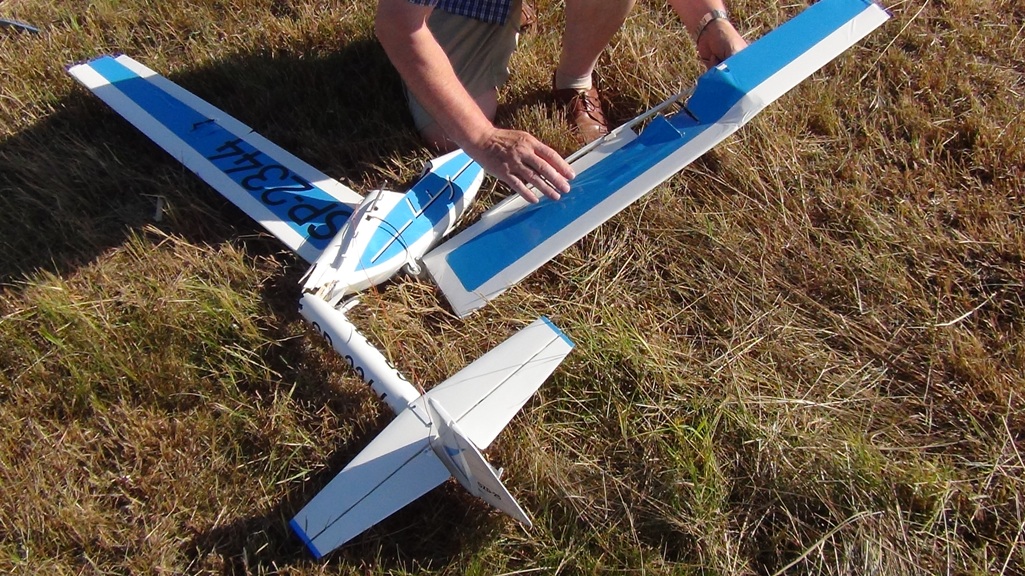 Badania „komisji” oszacowały katastrofę. Odbiornik nie uszkodzony (całe szczęście). Trzy serwa straciły zęby (niby karbonowe). Belka ogonowa całkowicie złamana (a wydawało mi się ,że taka solidna). Prawe skrzydło złamane w okolicy lotki. Pilot z cała przednią częścią przeżył. Praktycznie model nie do odbudowania. Ale…szkoda żeby ten projekt skończył marnie.
