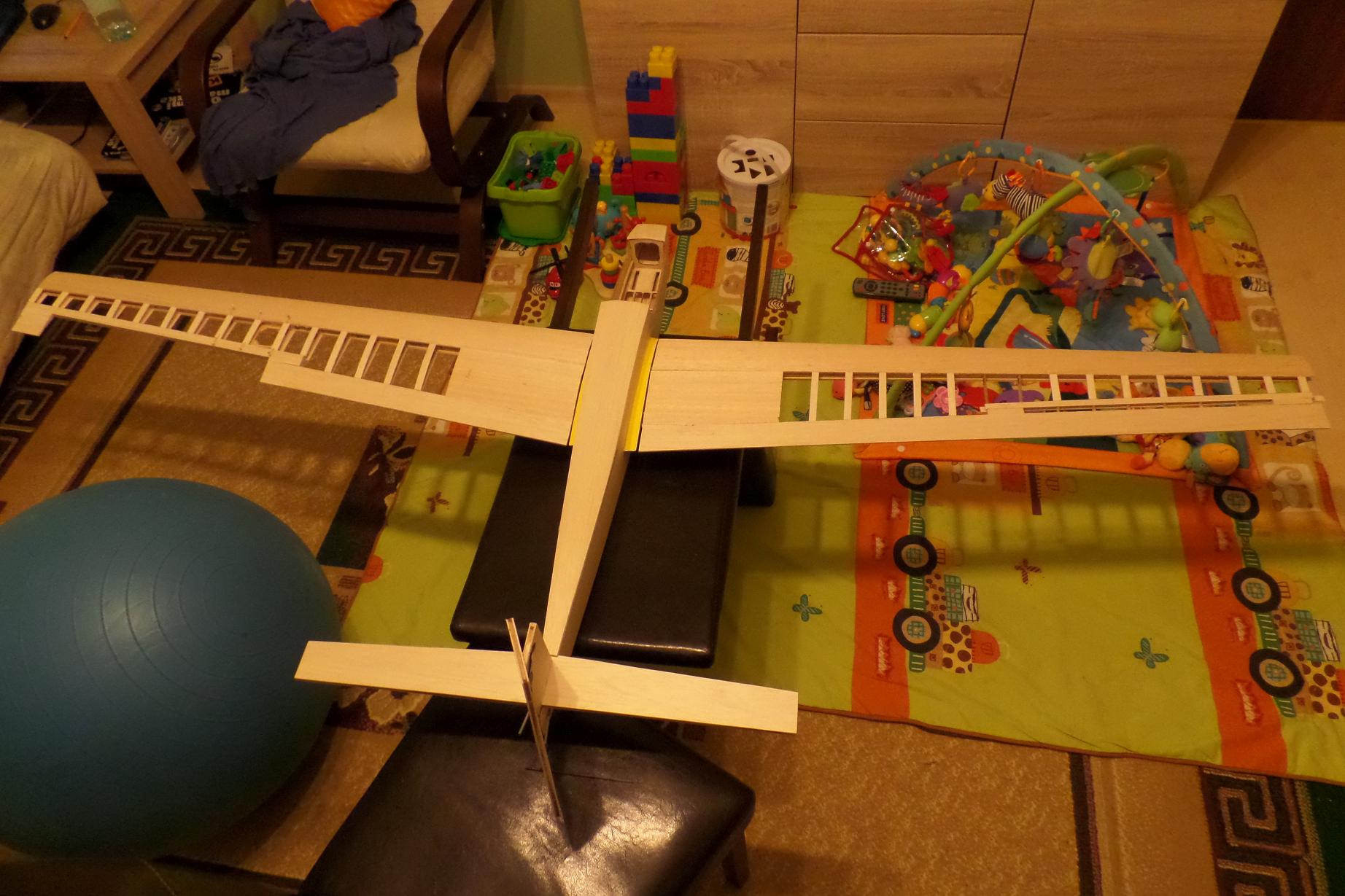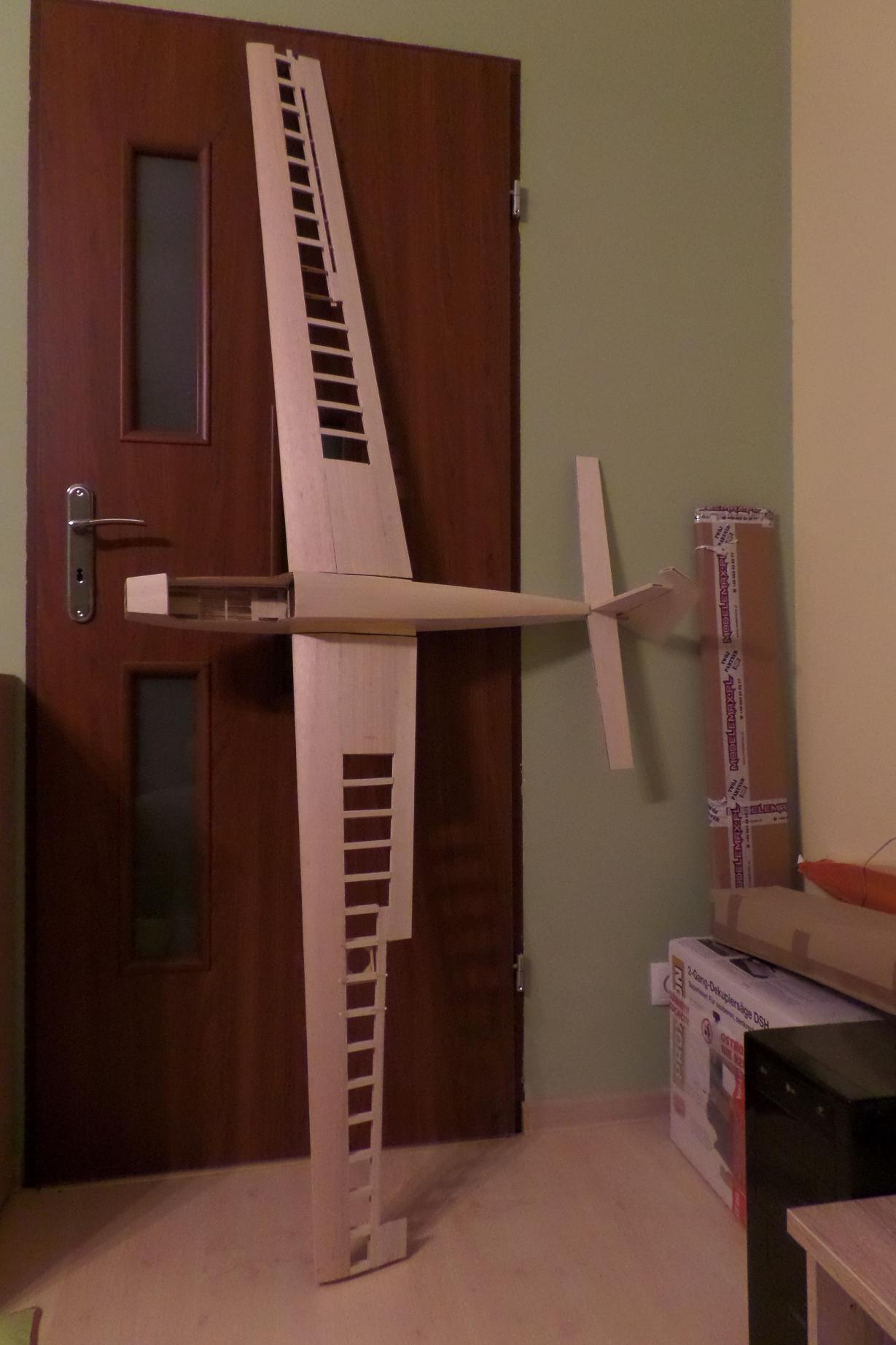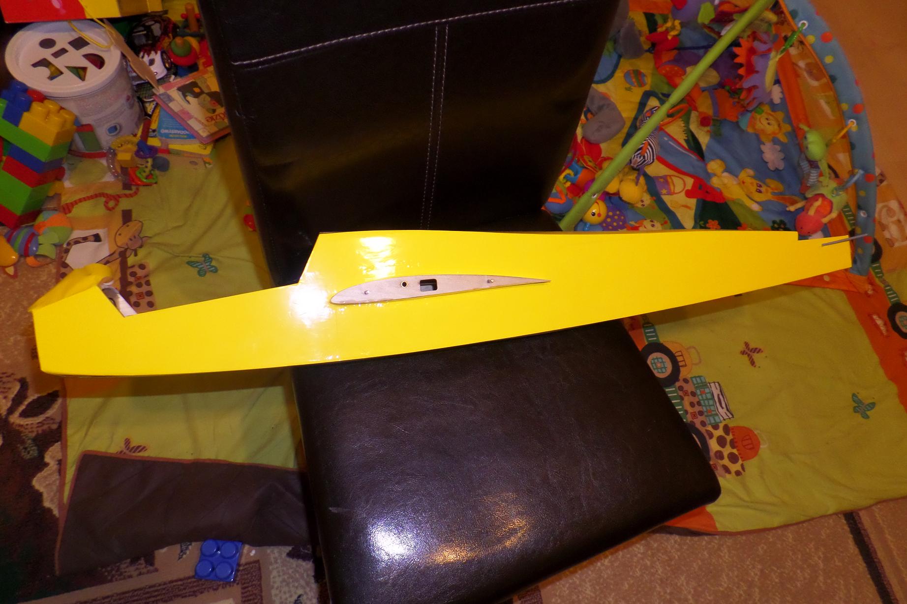 Na chwilę obecną kadłub, z łącznikiem i płatami waży 520 gram.