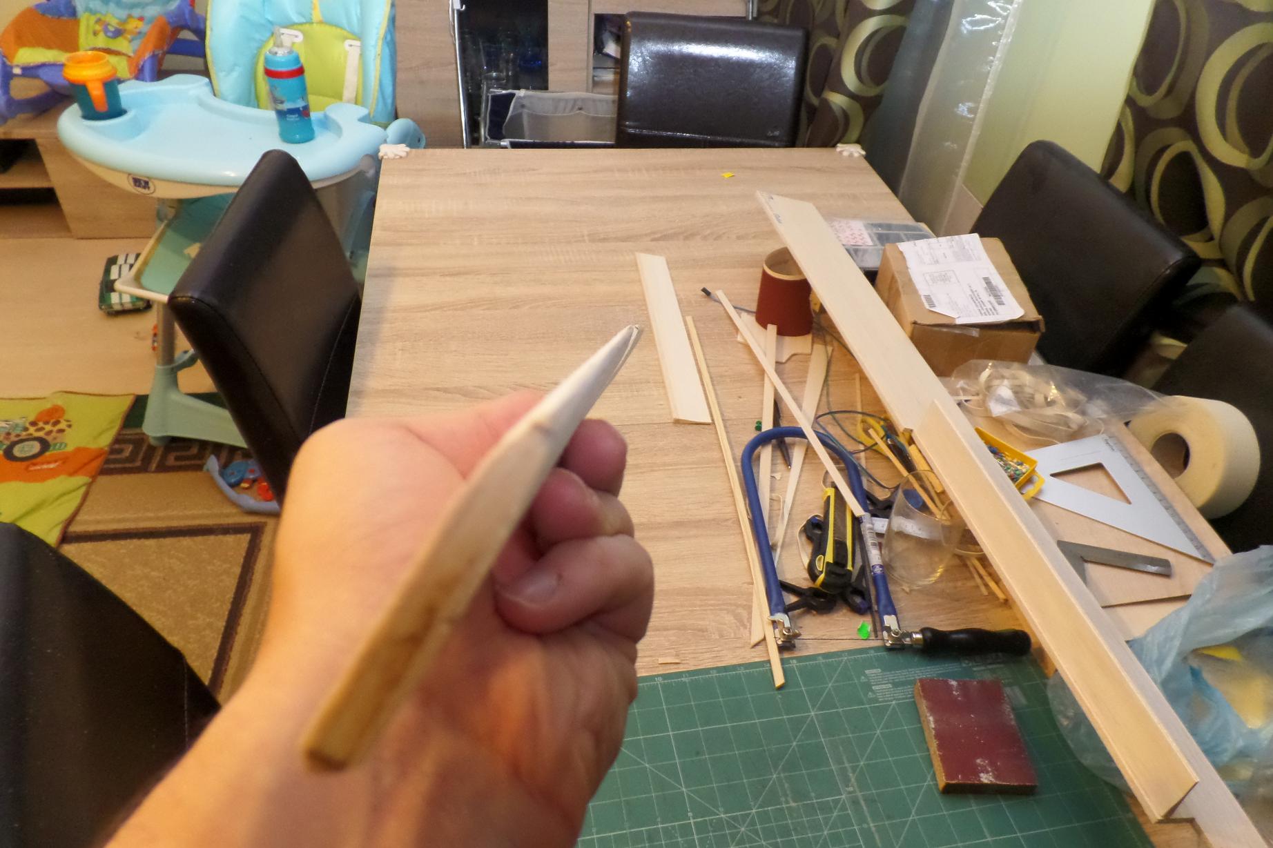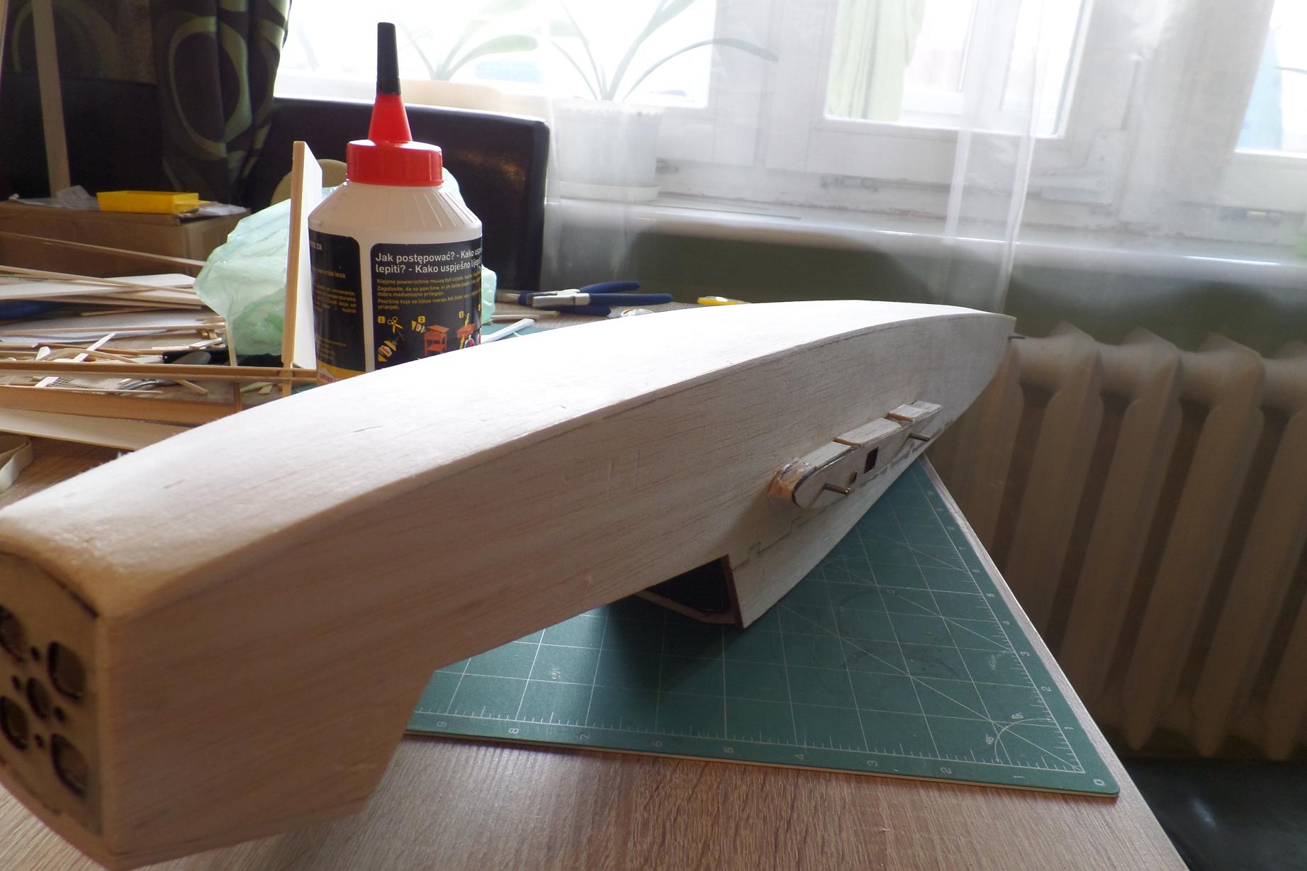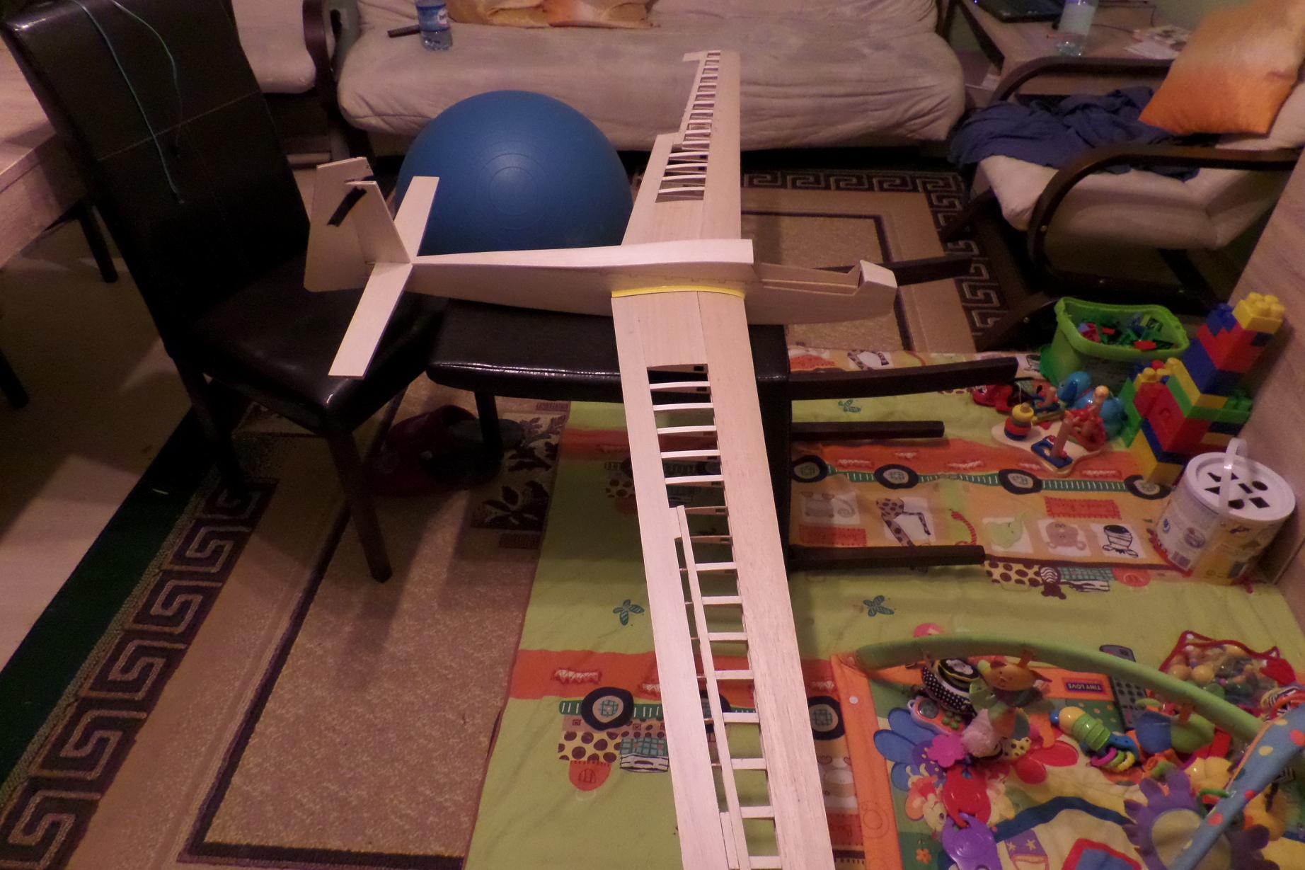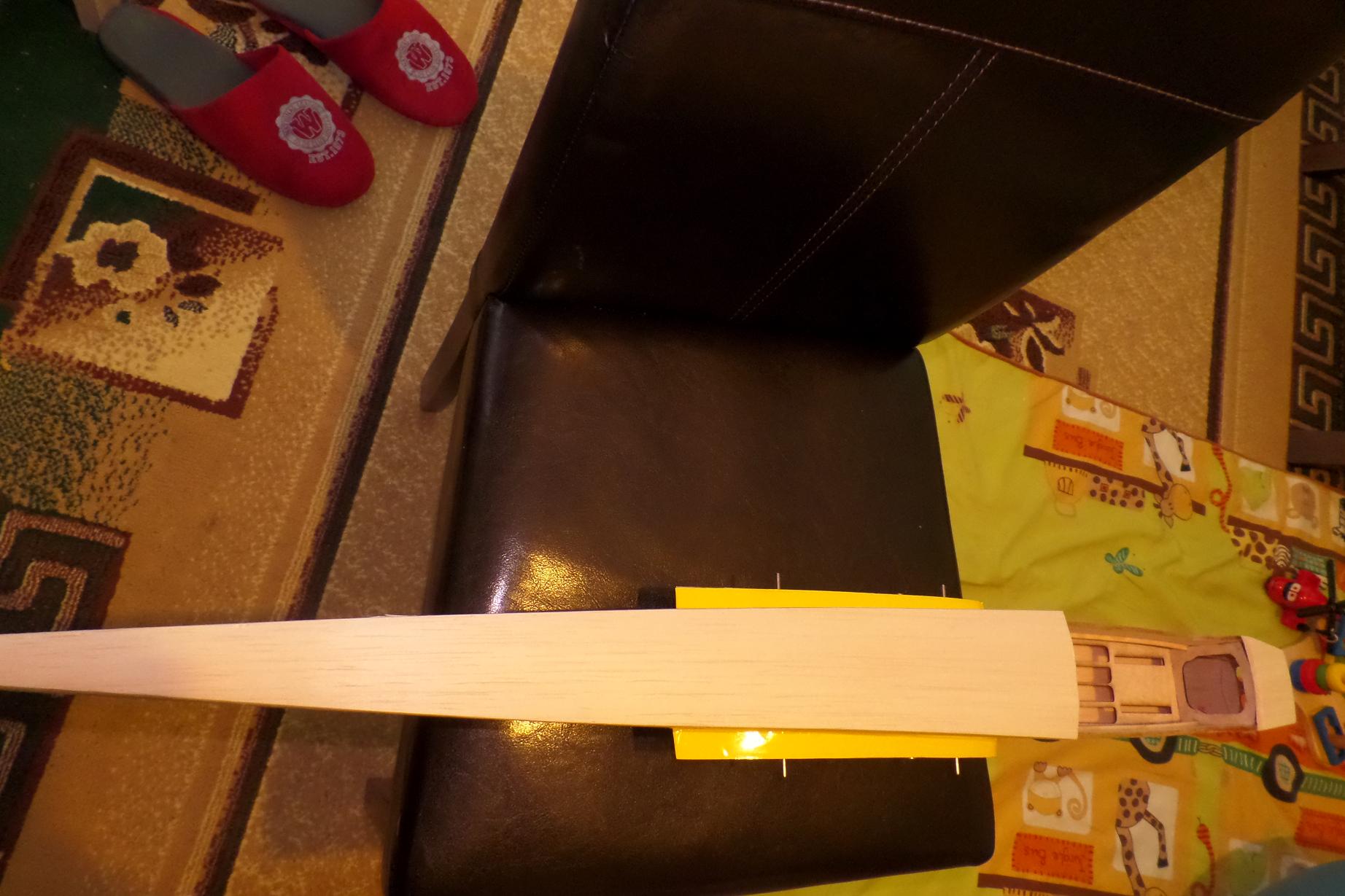 Na chwilę obecną kadłub, z łącznikiem i płatami waży 520 gram.