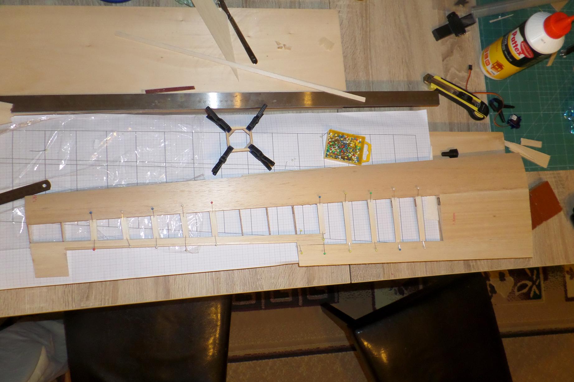 Płaty jeszcze się robią, naklejam nakładki na żeberka i je wykańczam.