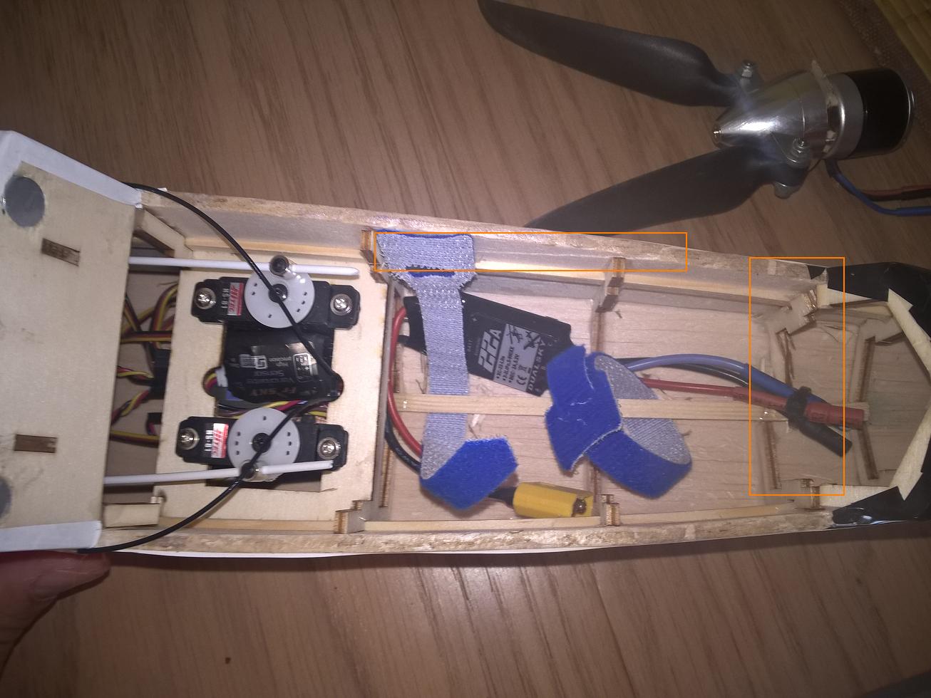 Mocowanie na 2 rzepy nie sprawdziło się akumulator miał możliwość zmiany położenia... Następnym razem zrobię półkę i pewnie po wyważeniu nakleję pasek rzepa by akumulator siedział pewnie.