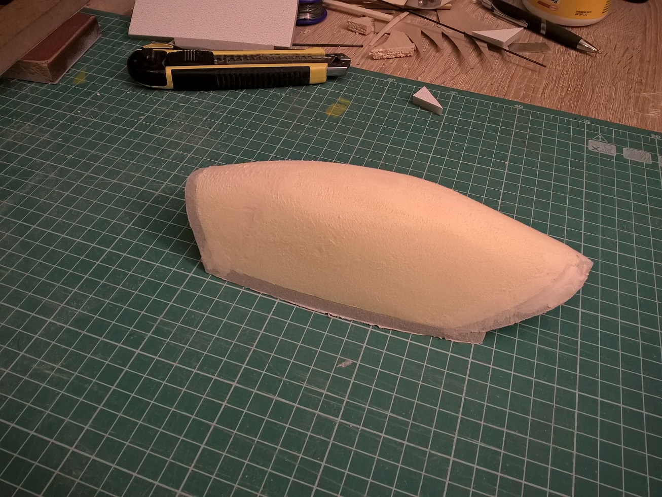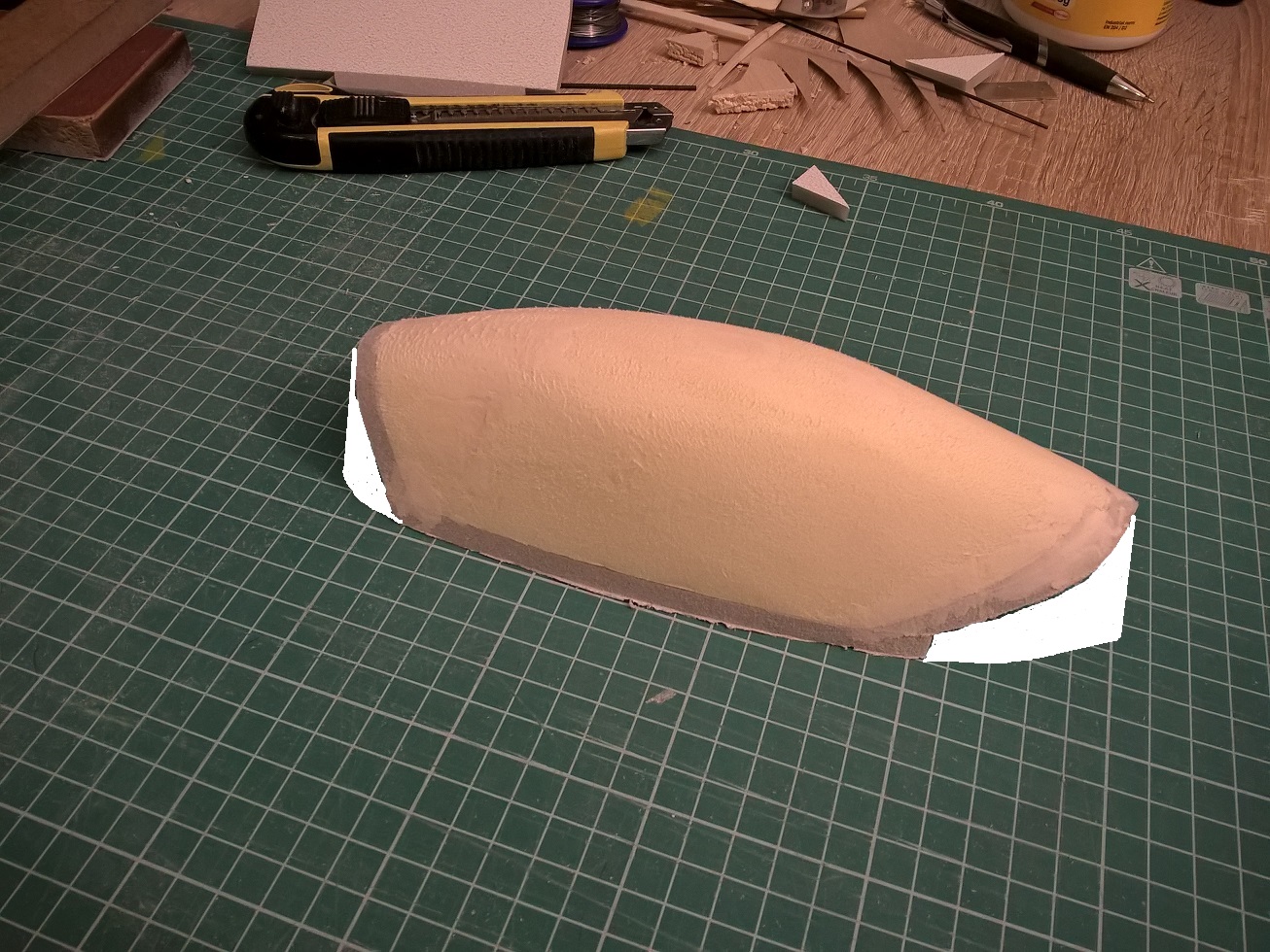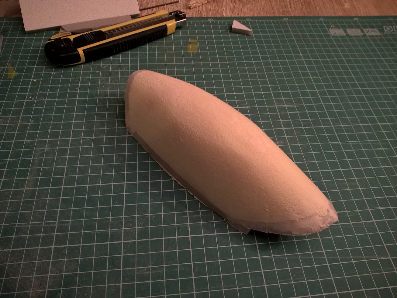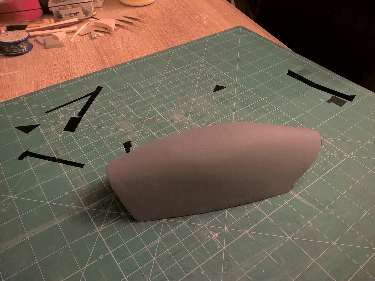 Jak będziesz robił następne kopyto w przyszłości, to zadbaj aby jego kształt naddatkiem wyprowadzić do podstawy. Nie ma zaburzeń w podciśnieniu i lepiej układa się materiał na kopycie. Sprawdzone!