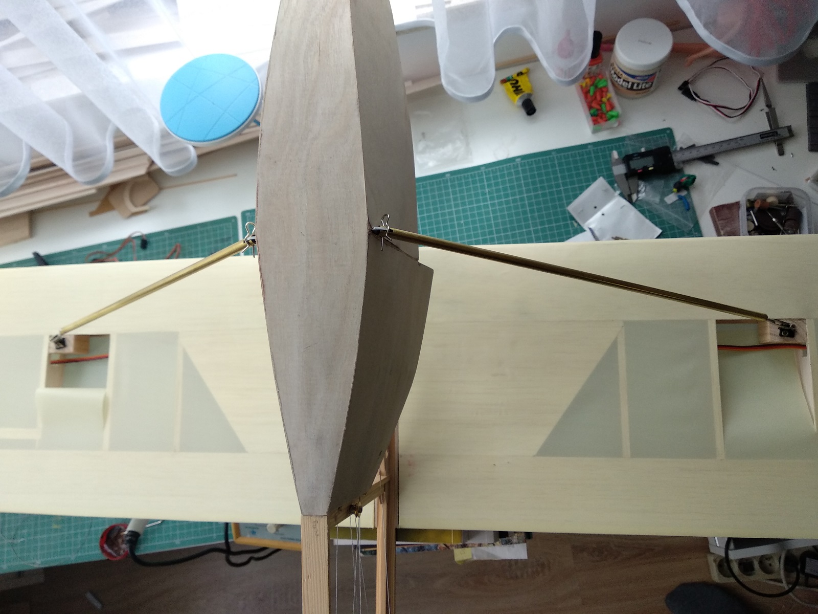 Model dostał folię, finalny montaż linek, naciąganie sterów, wszystko fajnie tylko...