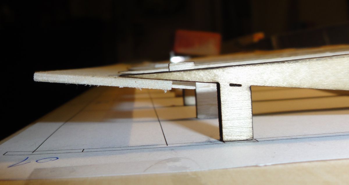 Jako że pierwszy raz to robię, zacząłem od krótszego odcinka części centralnej skrzydła. Przymiarka na skrzydle: