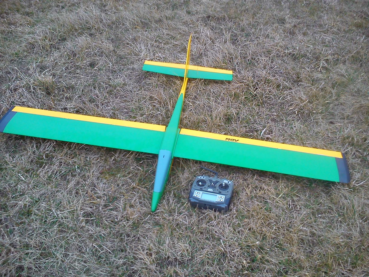 Dziś kolejne loty, przesunąłem pakiet maksymalnie do przodu, + 12 gram ołowiu w kabinie. Zdecydowana poprawa na działanie SW, nie są już potrzebne ograniczenia wychyleń, model reaguje spokojniej. Pogoda była dobra, lekkie podmuchy wiatru a czasami i cisza. Pojawiała się termika - nawet udało mi się troszkę załapać
