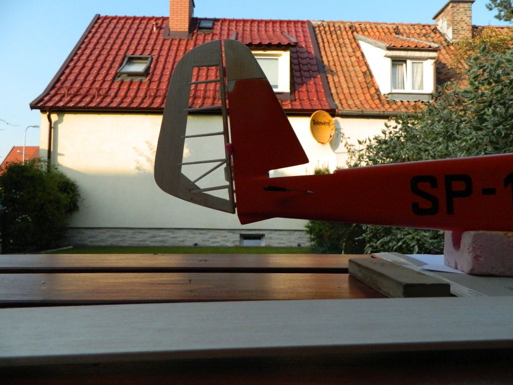 Po powrocie z lotniska, a właściwie już w czasie drogi powrotnej z pola, zadecydowałem, że czas na przebudowę modelu. Powiększenie statecznika pionowego, powiększenie steru kierunku i zmiana haka do holowania, będzie taki sam jak w Kobuzie. Doskonale się sprawdza a jego zaletą jest szybka możliwość zmiany położenia. Niebawem pokażę zdjęcia jak szybowiec wygląda po przeróbkach.