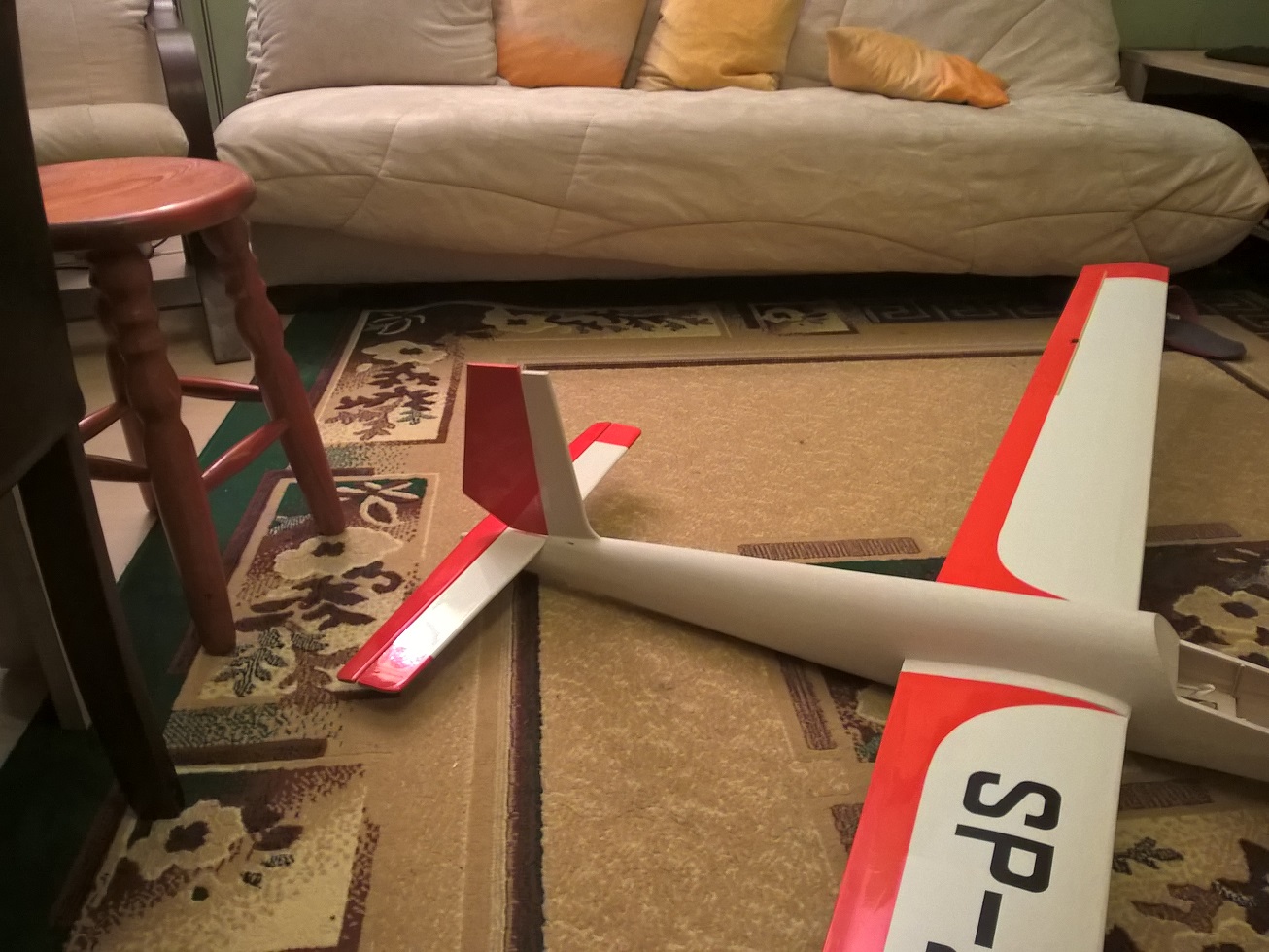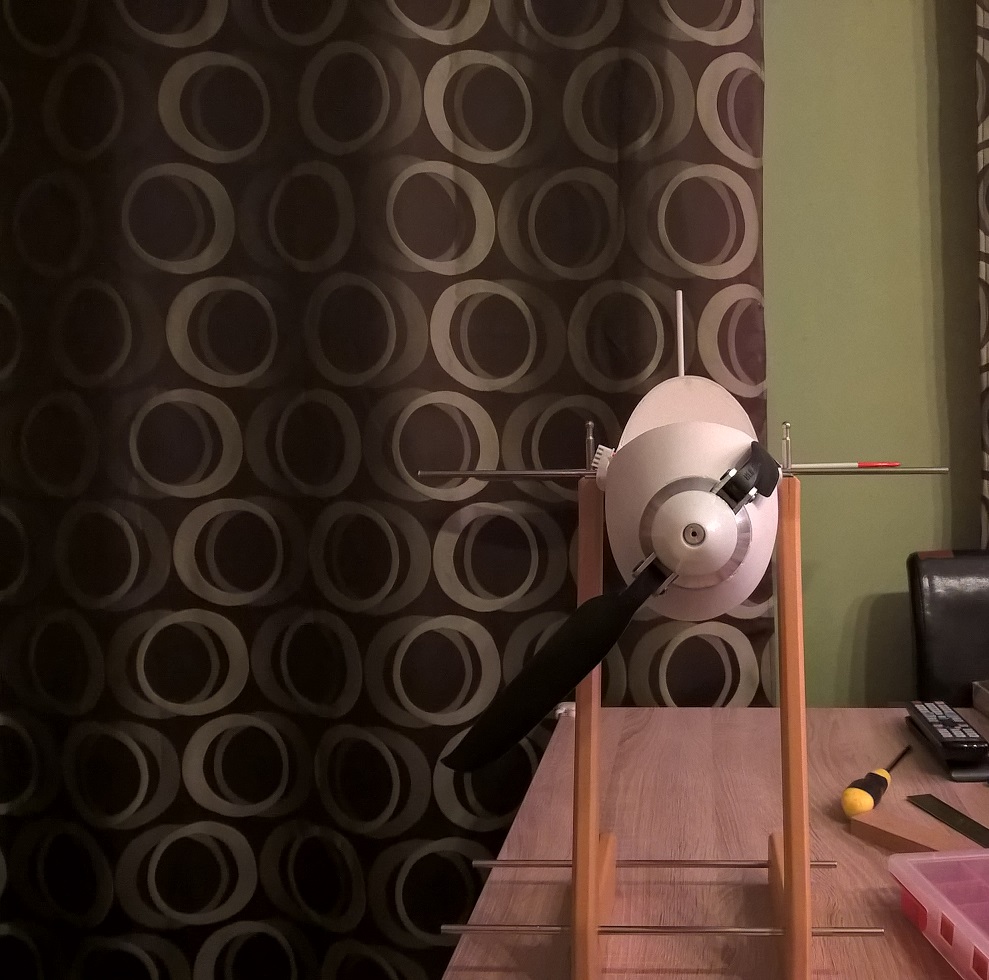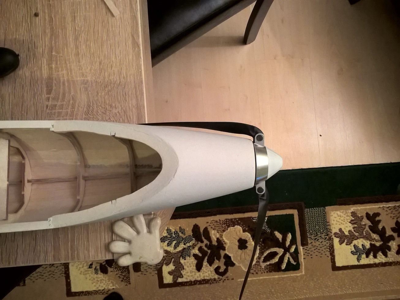 SC jest przed bagnetem.Z tyłu brakuje tylko SK, to kilka gram..., z przodu jest silnik (70 gram), LiPo 3S 1,5Ah (115 gram), kołpak i łopatki.