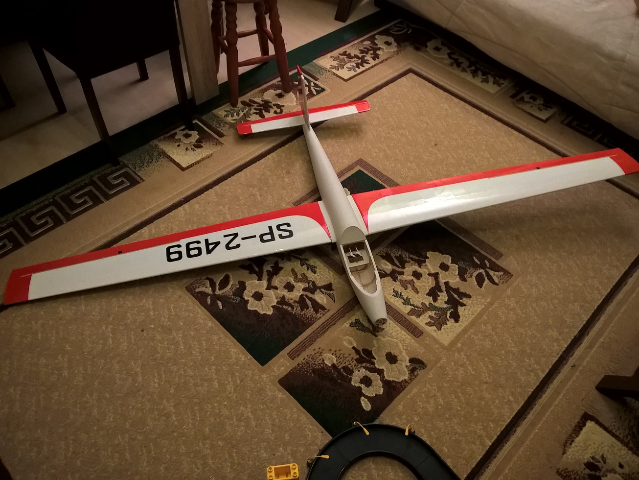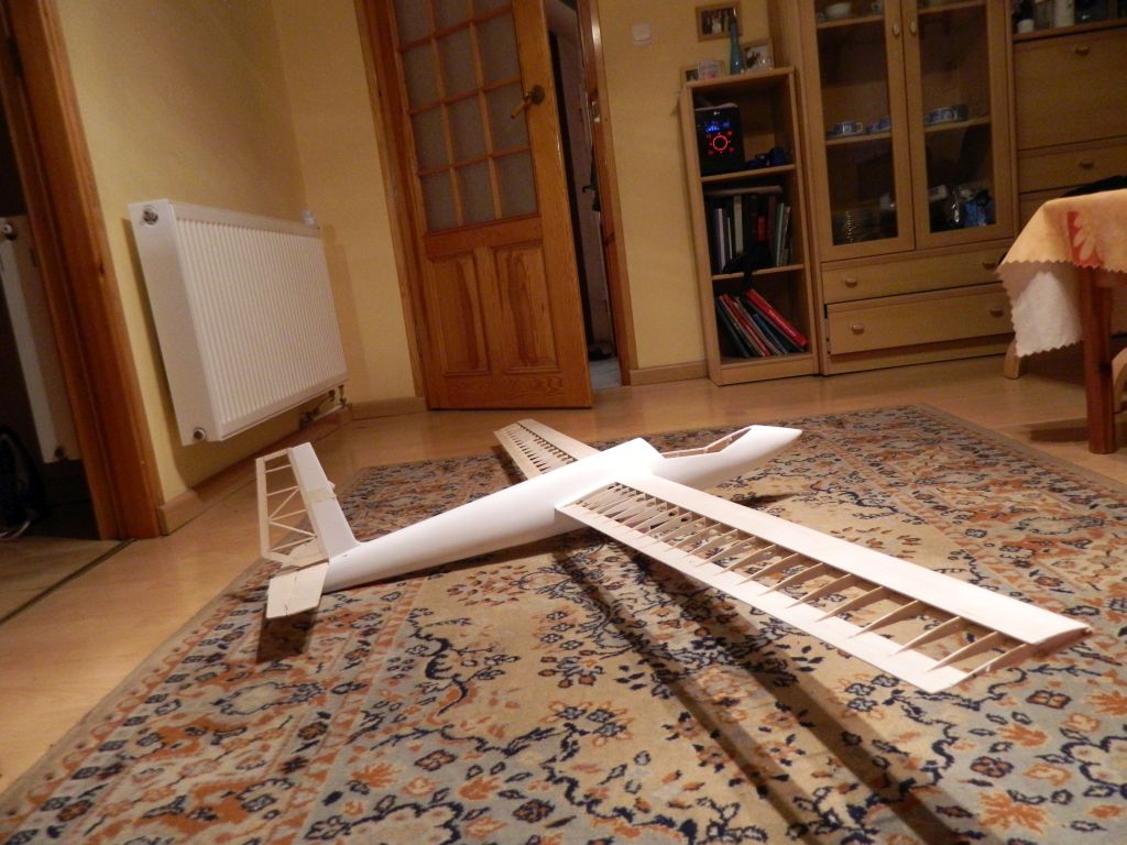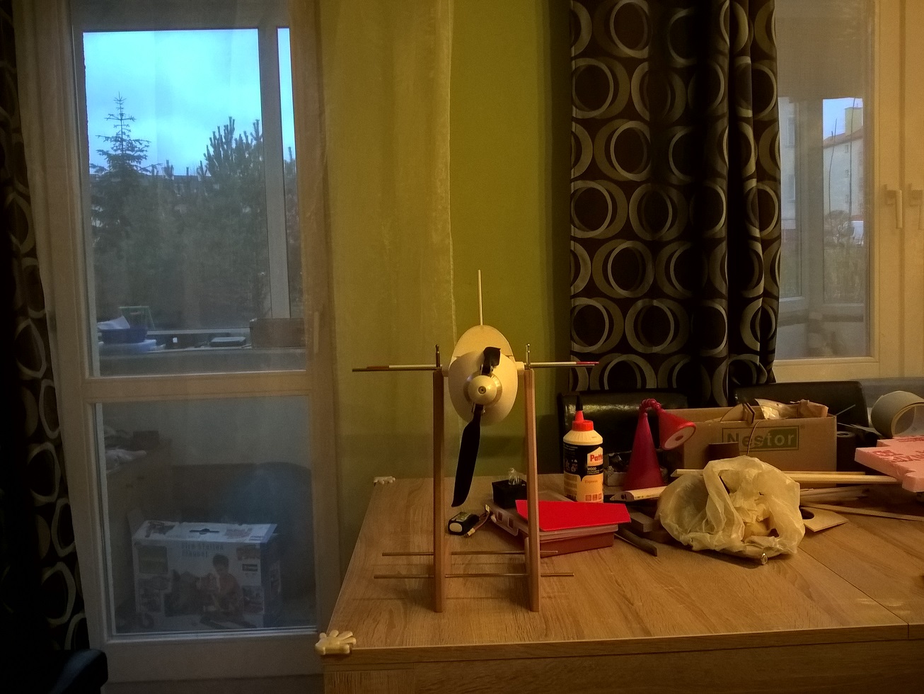 SC jest przed bagnetem.Z tyłu brakuje tylko SK, to kilka gram..., z przodu jest silnik (70 gram), LiPo 3S 1,5Ah (115 gram), kołpak i łopatki.