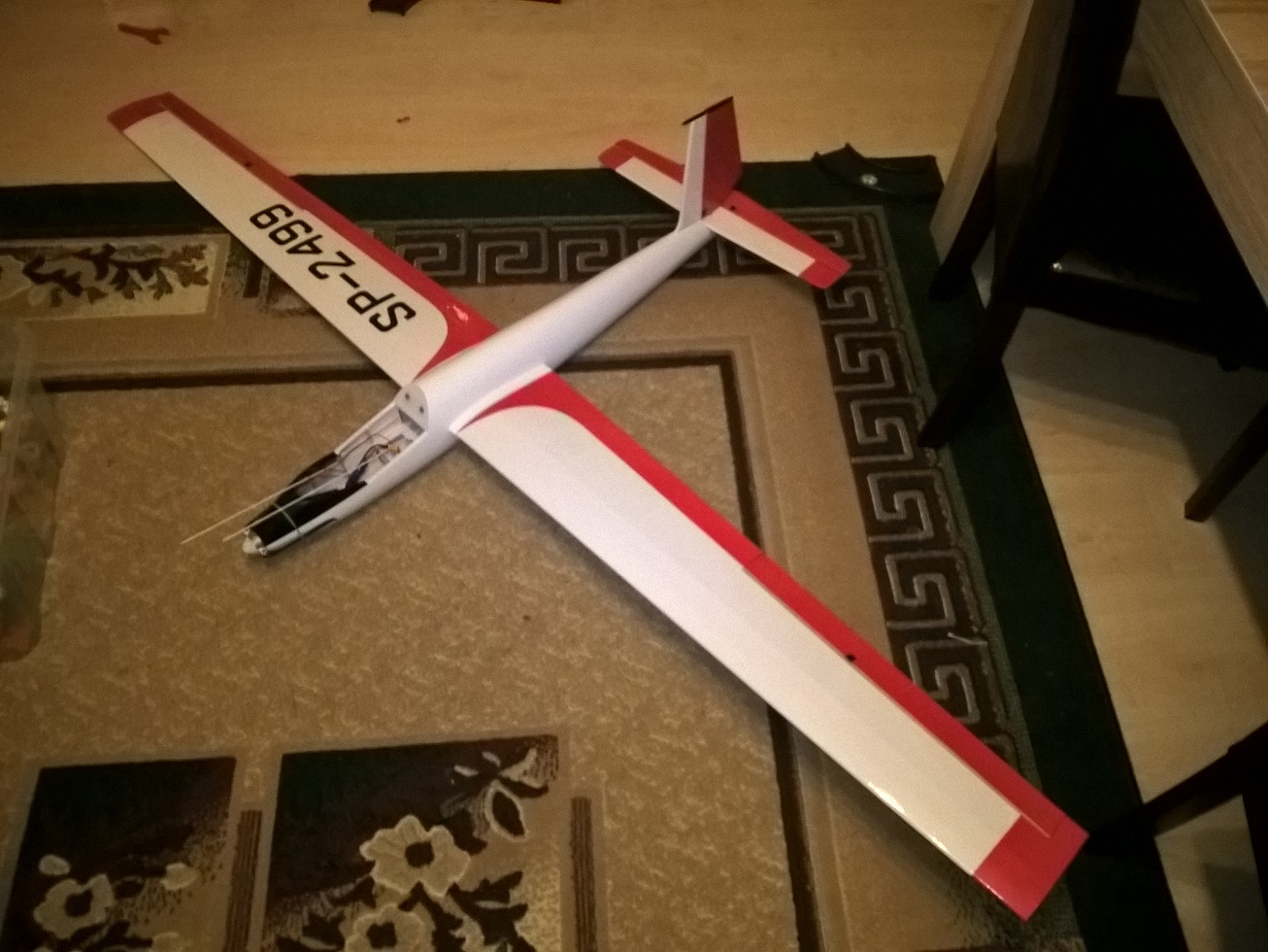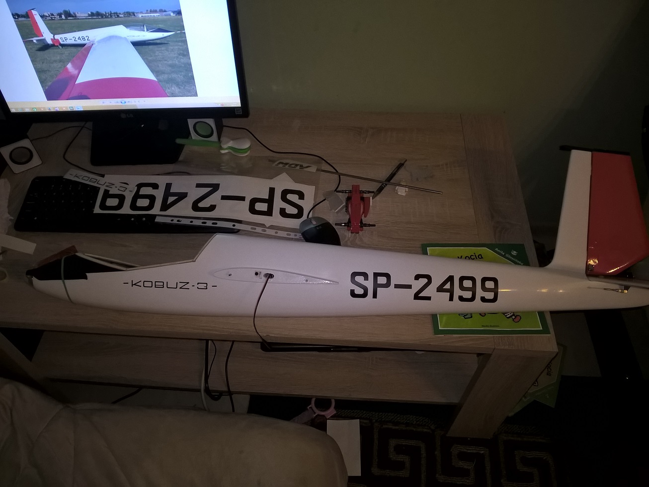 W takiej konfiguracji Mój Kobuz waży 1369 gram do lotu. Daje to obciążenie powierzchni na poziomie 40,7 g/dm2.