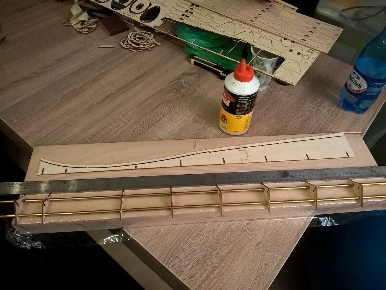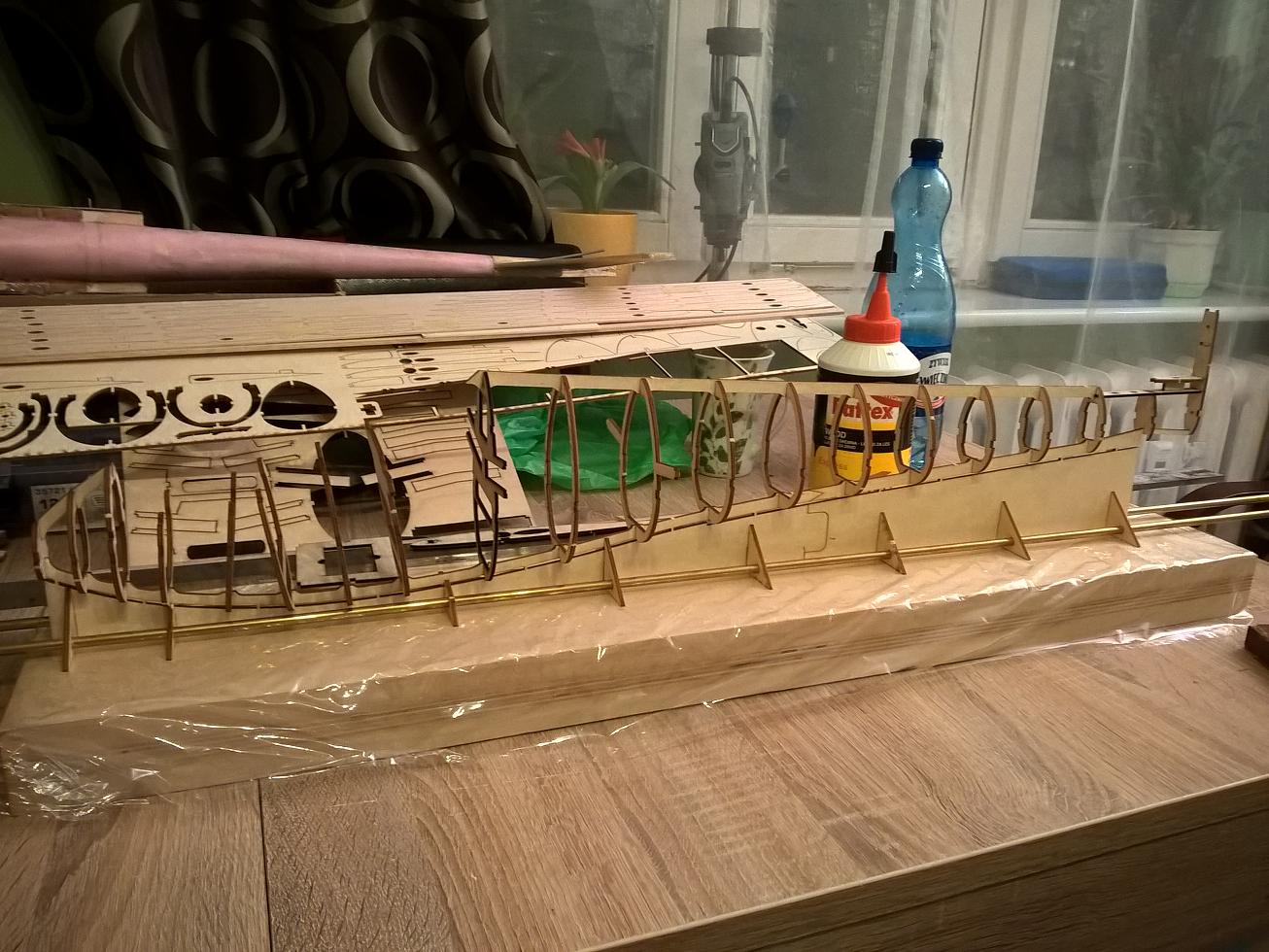 Chodzi o spływ, przydało by się coś aby unieruchomić żebra podczas montażu potem doszlifować i na to pokrycie z balsy.