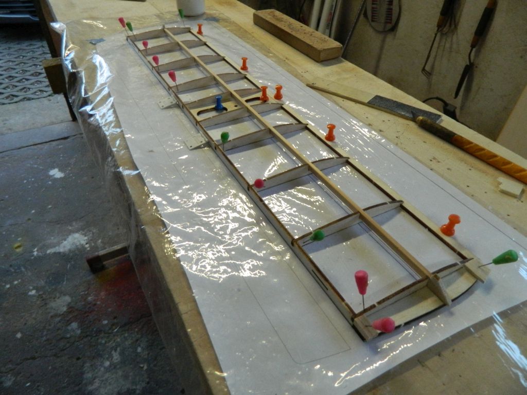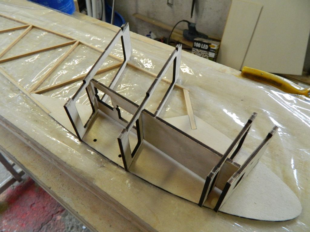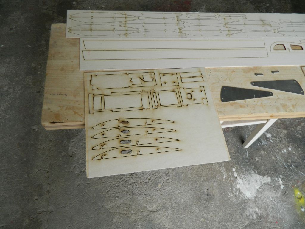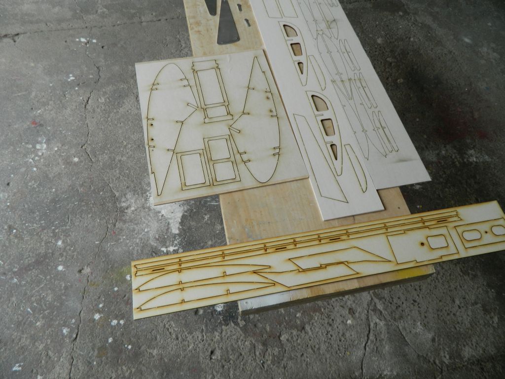 Główne założenia modelu to. Napęd elektryczny /silnik z serii 28xx/ pakiet 2S, Ster kierunku i wysokości, i cała reszta zgodnie z projektem Papcia Schiera. Jedyne zmiany to. Inne mocowanie poziomego / na śrubę/, a co za tym idzie lekko przerobiony tył kadłuba. Zmiana sklejki 1,5 mm na boczkach na 3 mm Panama, no i wykorzystanie w większej mierze balsy. To w skrócie. W tym tygodniu kończę formatki, oddaję do wyceny i jedziemy z tematem.