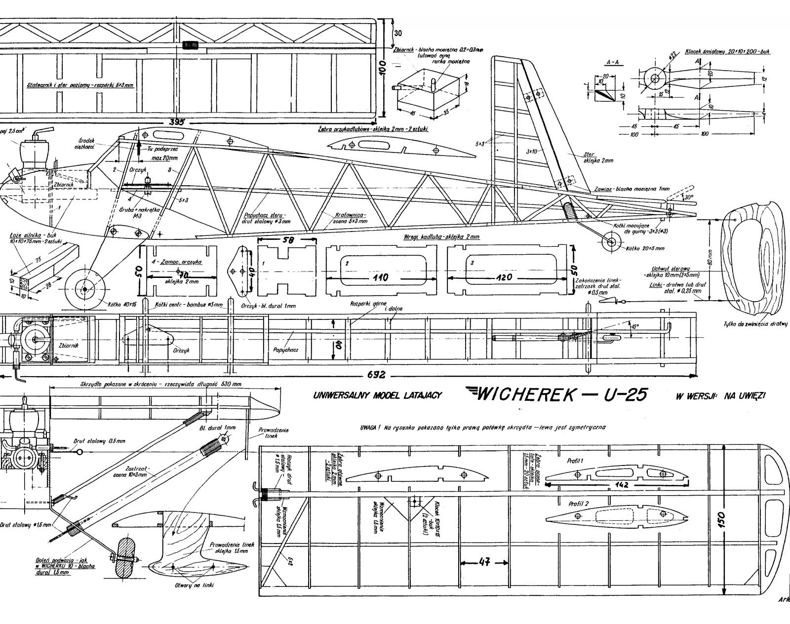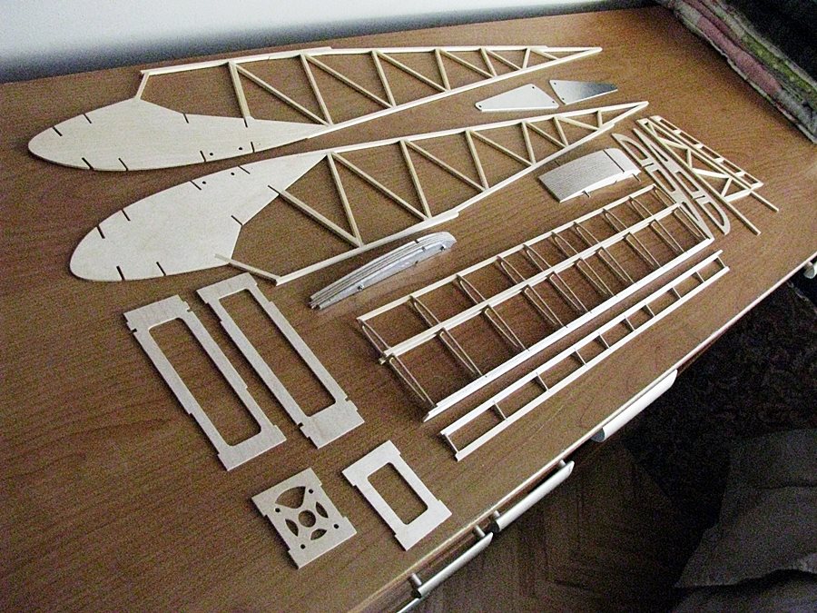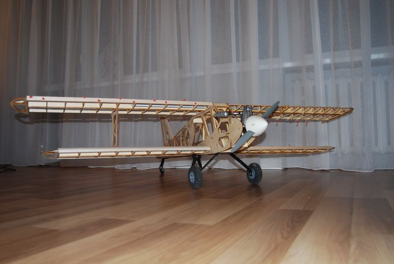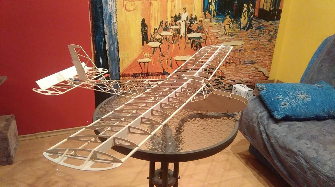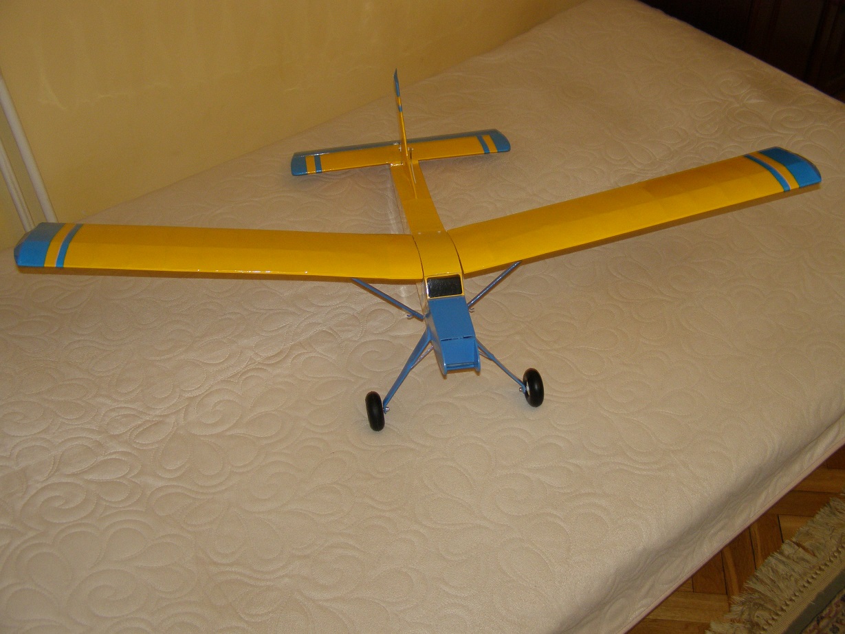 . Może jednak da się go odrestaurować. Budowany co prawda w kryzysie na początku lat osiemdziesiątych z byle czego dla syna (w sklepach na półkach był tylko ocet) ,ale całkiem przyzwoicie wygląda. Zerwałem pokrycie z natronu (taki cienki papier brązowy w prążki służący do pakowania) i do roboty. Postanowiłem przeprowadzić konwersję ze spaliny na elektryka. Po pierwsze, wywaliłem usterzenie. Zrobiłem je w wersji szybowcowej. Przedłużyłem mordkę i wykonałem wznios skrzydeł powyżej 6 stopni. Podwozie wykonałem wyższe z większymi kółkami. Oczywiście klapy wziernikowe do pakietu i pólka na serwa. To tyle. Całość została pokryta folią Oracower.