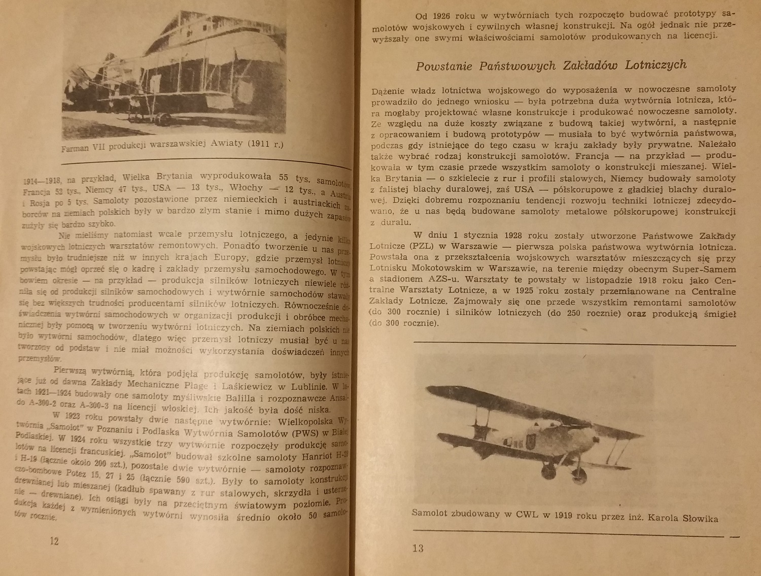 Książka z serii "Biblioteczka Skrzydlatej Polski" zawierająca nieco historii Państwowych Zakładów Lotniczych oraz w głównej mierze opisy konstrukcji samolotów PZL z danymi technicznymi wraz z rysunkami.