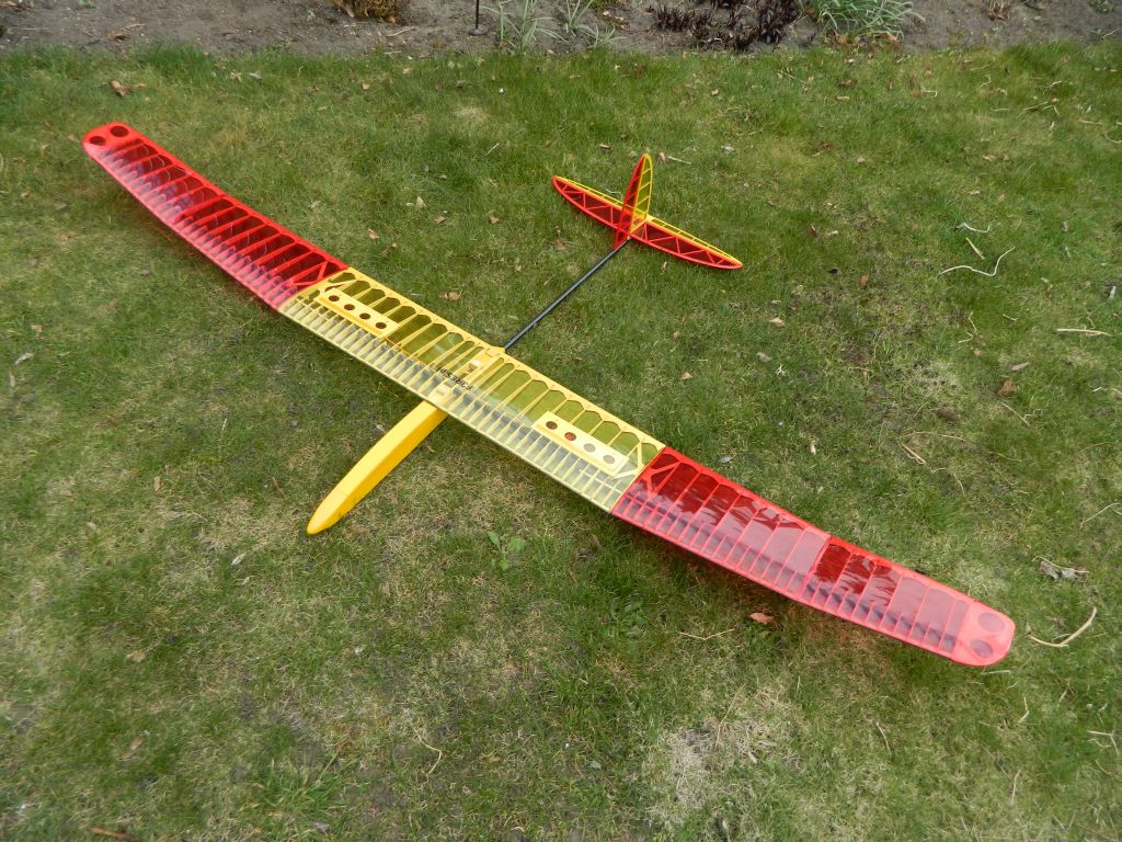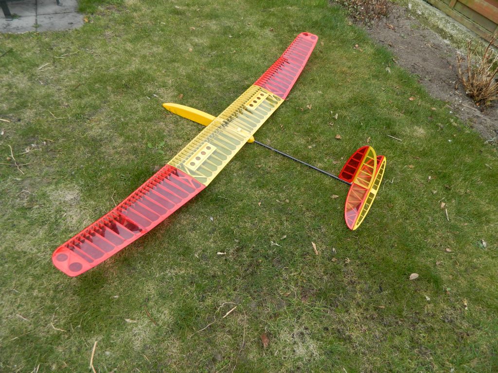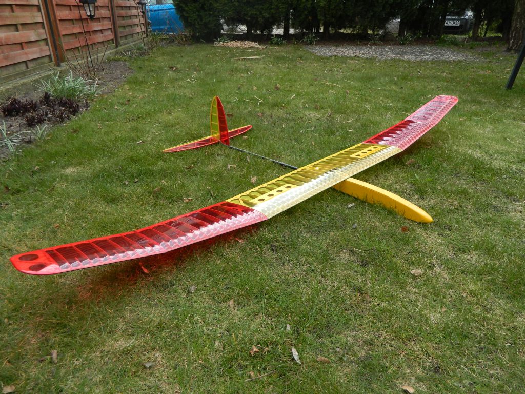 Ostatecznie waga do lotu wyszła 430 g. Można jeszcze urwać kilkanaście gramów: lżejsze serwa /sk i sw kavan GO13 MG hamulce Emax 3302/ lżejszy odbiornik /Optima6/, lżejszy pakiet /lipo 0,8 Ah 2s plus regulator napięcia/. Waga do lotu oscylowała by wtedy w okolicach 400 g. Obciążenie około 12g dm^2. Uważam, że wyszło wagowo dobrze. Oblot odbył się przy wietrze od 3 do 5 m/s i dlatego niewiele mogę powiedzieć o własnościach lotnych. Na pewno jest sterowny, nie zauważyłem braku stateczności czy innych złych tendencji. Loty z holu po wyczepieniu polegały na utrzymywaniu lotu szybowca pod wiatr i niedopuszczenie do cofania się z wiatrem, no i na koniec lądowanie. Ogólnie jak to nieraz mówię o takich modelach, "gazeta" :lol: .