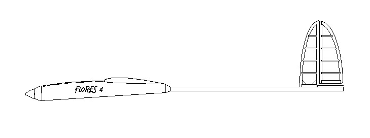 Aktualna aura nie pozwala na loty modelami, jednak to jedno wyjście na lotnisko i bardzo pozytywne wrażenia z lotów Flo 3 zaowocowały w mojej głowie pomysłem aby dorobić do skrzydeł kadłuba F5l, czyli wersji silnikowej. Swego czasu odkupiłem od kolegi dwa silniki elektryczne AEO RC MM1908 C20 1550 kV. Silniki owe są dopuszczone do napędzania modeli oldtimer elektrorubber jako jedyne. Ruberów już nie będę robił tak więc nie było się nad czym zastanawiać. Według producenta silniczek- malutki bo: 23 mm średnicy, 22 mm długości bez osi i wagi niecałe 30 g - kręci na pakiecie 3S i na śmigle 7 do 8 cali od trochę ponad 400 g do prawie 550 g ciągu, czyli spokojnie... sobie myślę ;) . Dwa wieczory przy cadzie i przerysowałem kadłub, szczególnie przednią część kadłuba Flores 3. Poukładałem na formatki i oddałem do cięcia. Reszta modelu bez zmian. Poniżej szkic kadłuba FloRES 4.