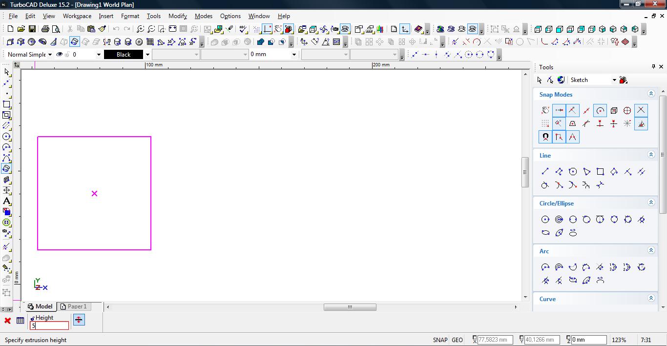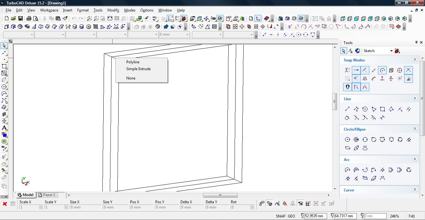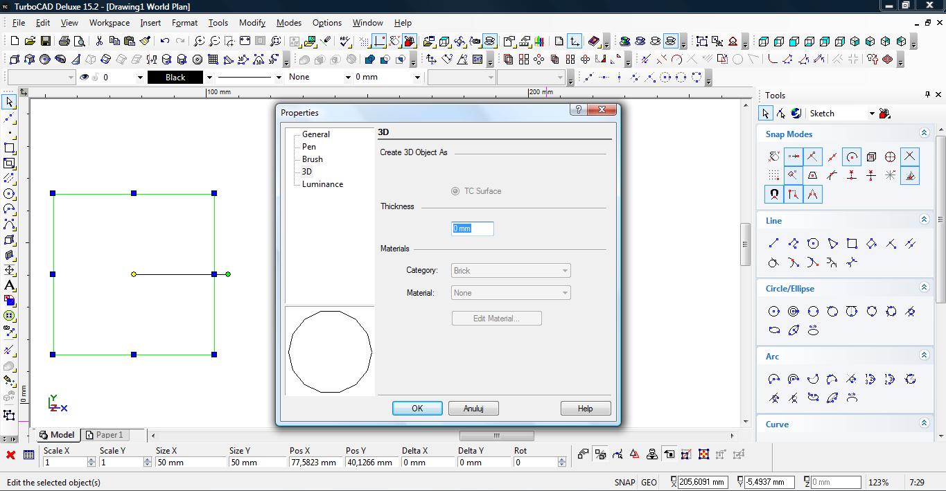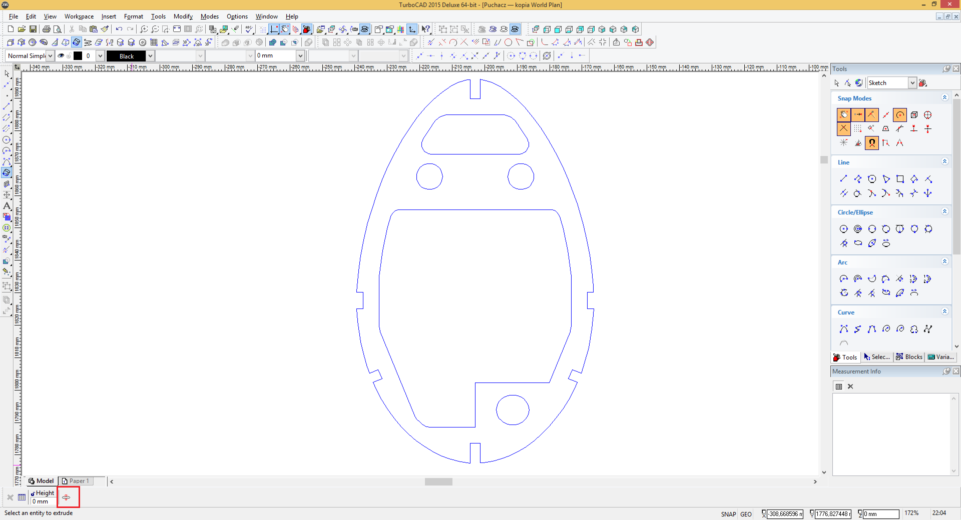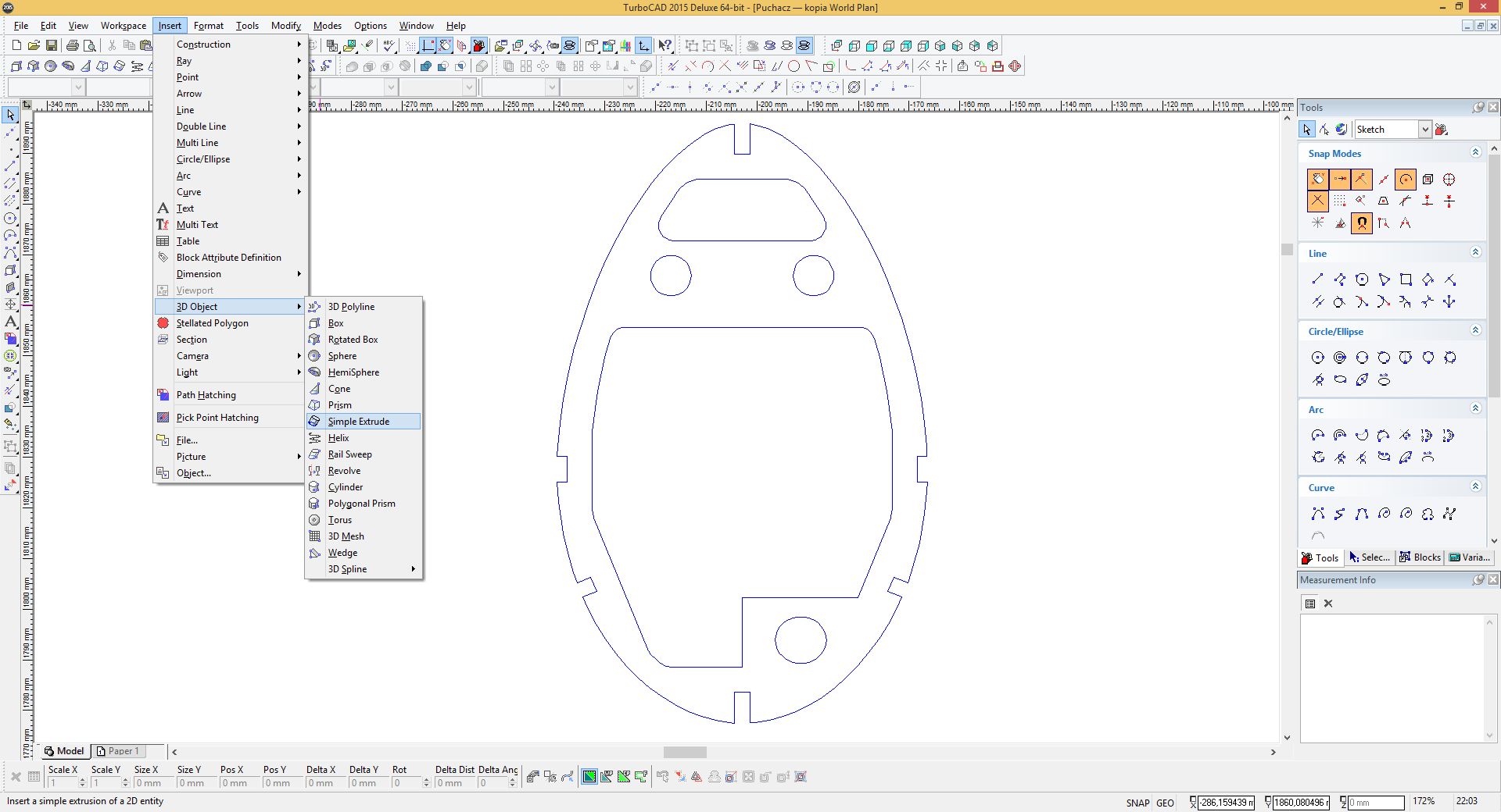 Używając funkcji Simple Extrude, TurboCad tworzy nowy obiekt na podstawie naszego i poddaje go modyfikacji.