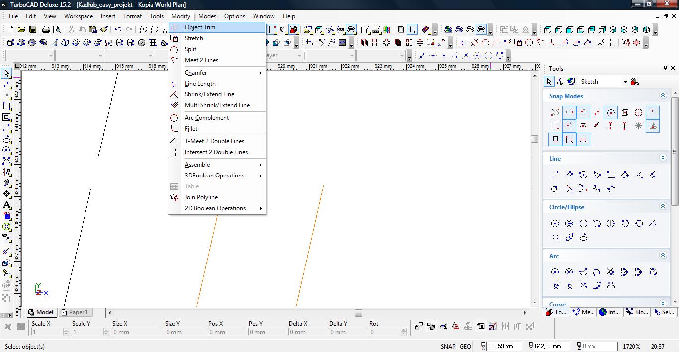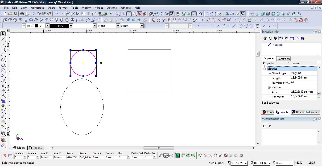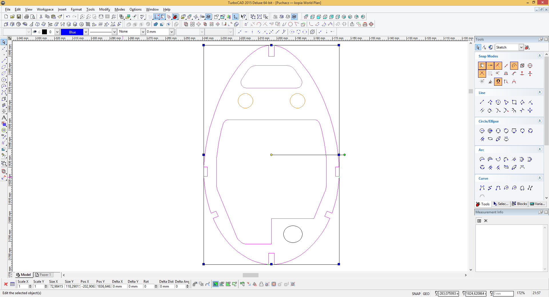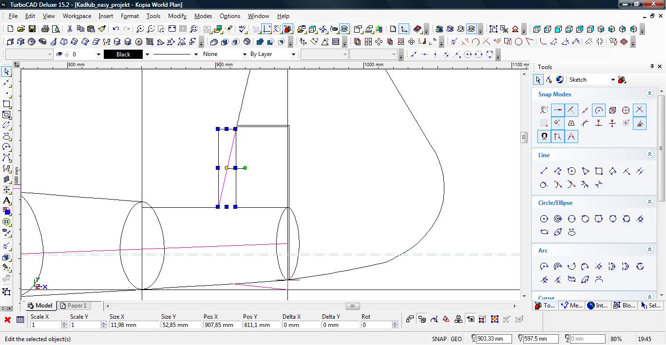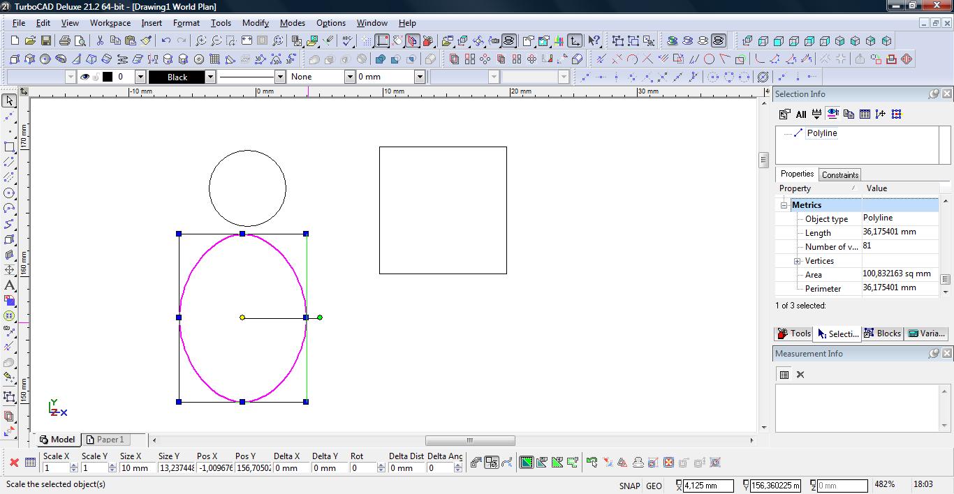 Używając funkcji Simple Extrude, TurboCad tworzy nowy obiekt na podstawie naszego i poddaje go modyfikacji.