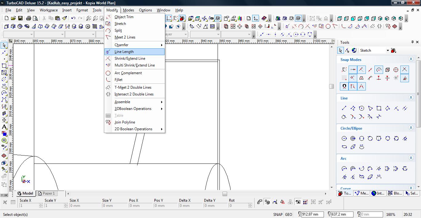 Po wybraniu funkcji zaznaczamy obiekt, wciskamy TAB – aby przejść do paska właściwości I wpisujemy wysokość obiektu.