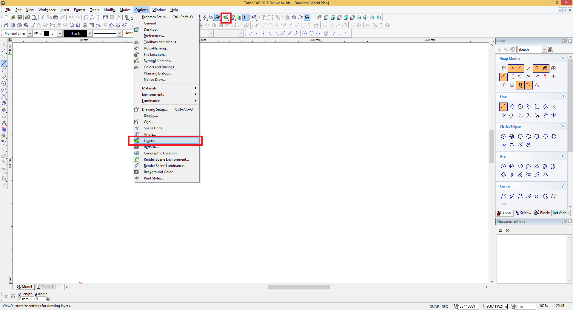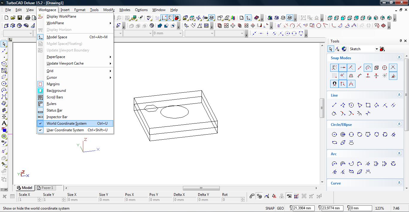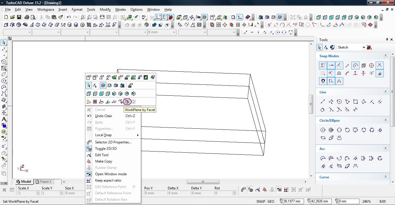 Istnieje w TurboCad pojęcie płaszczyzny pracy. Jest to aktualny obszar odniesienia dla nowo tworzonych obiektów.