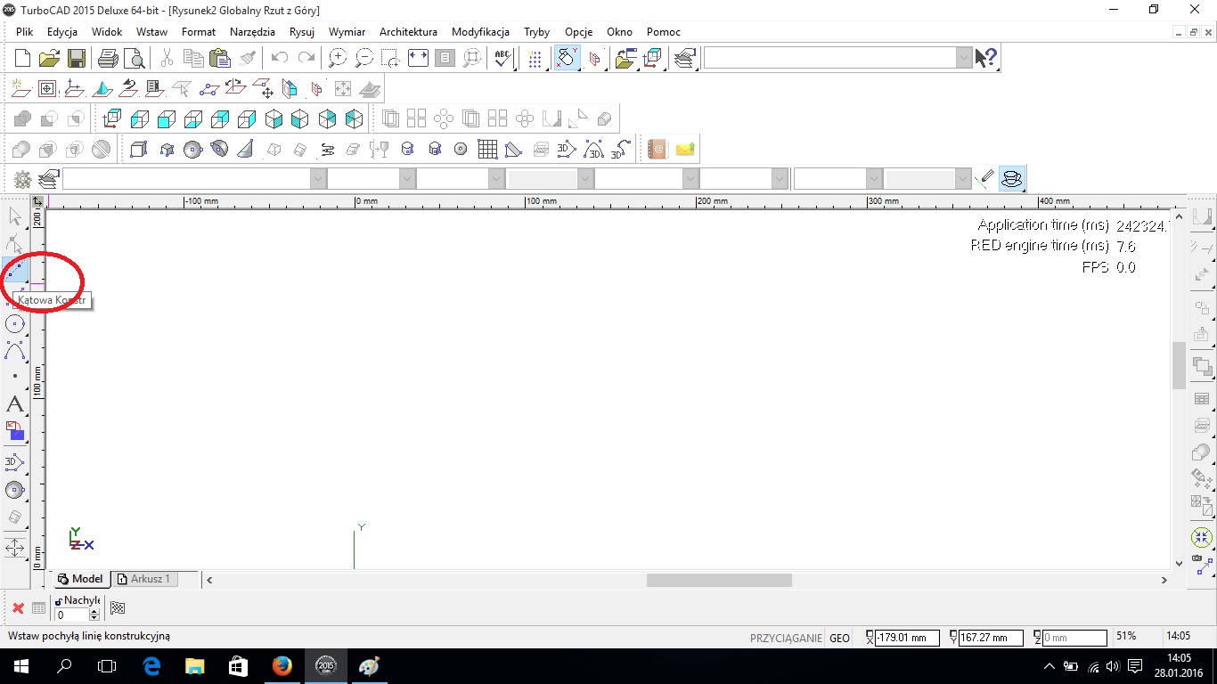 Usuwamy nasz okrąg i rysujemy ponownie, tylko najpierw zmieniamy płaszczyznę pracy.