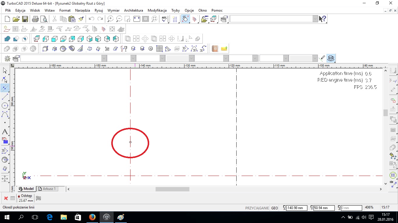 Teraz bierzemy się za ponowne rysowanie okręgu. Robimy to tak samo jak wcześniej. Tym razem wszystko jest tak jak to sobie zaplanowaliśmy.