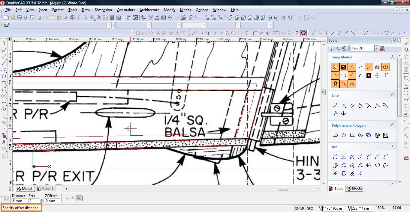 Podajemy w polu Distance najpierw 6mm, wybieramy linię klikamy w kierunku w jakim offset ma być wykonany, potem to samo dla 3mm.