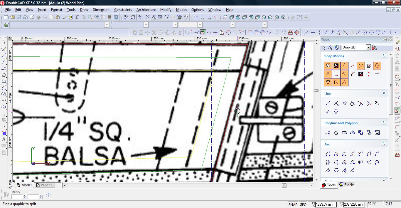 Przetniemy nasze linie używając narzędzia Split.(Modify->Split).