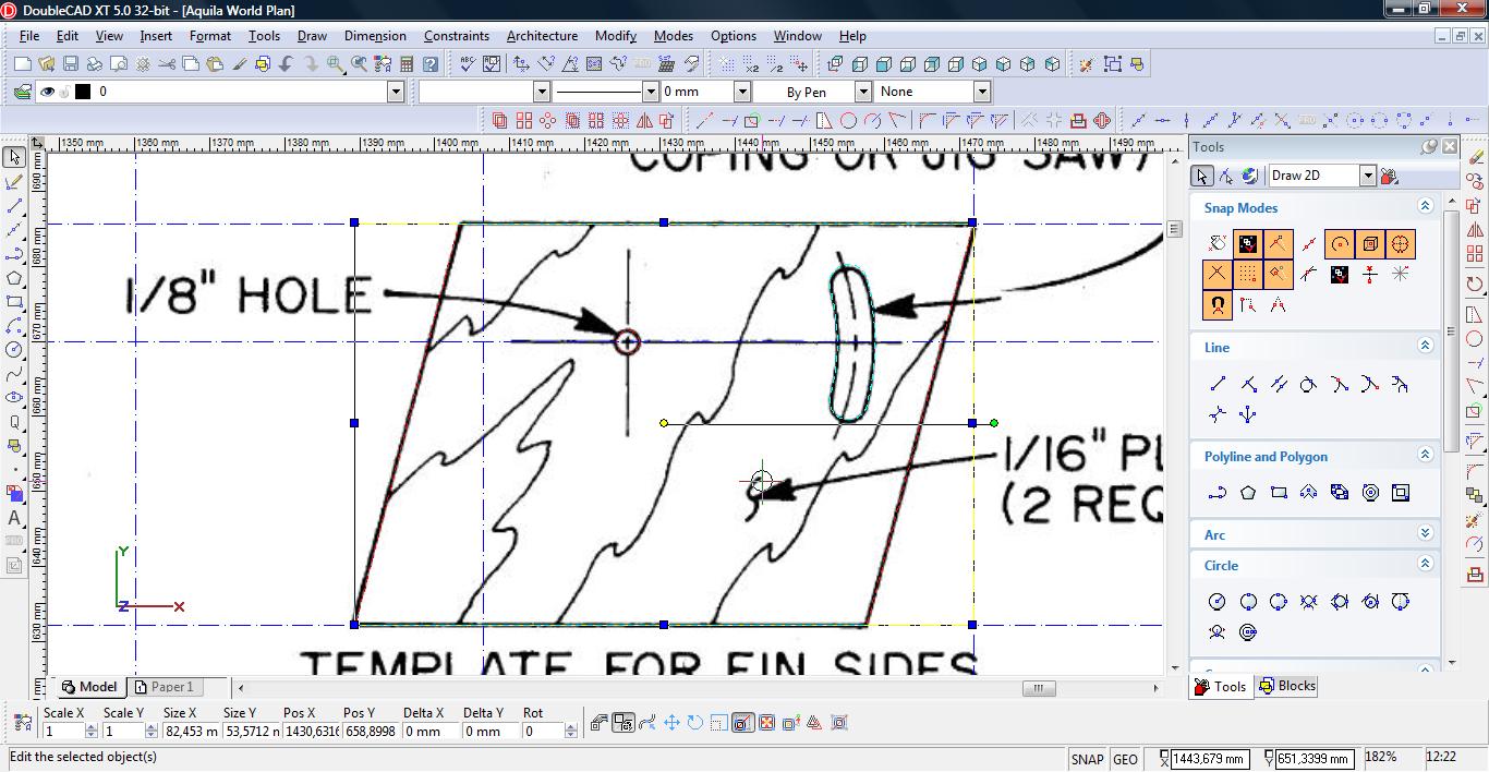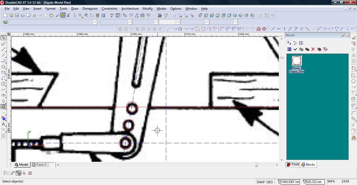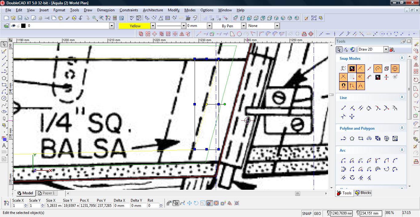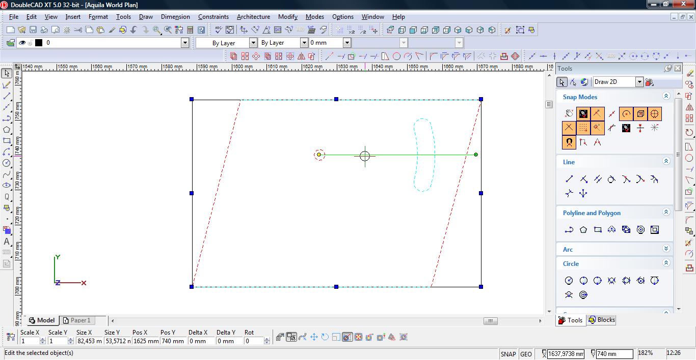Następnie przedłużamy nasze linie używając narzędzia ‘Line Length’ (Modify->Line Length).