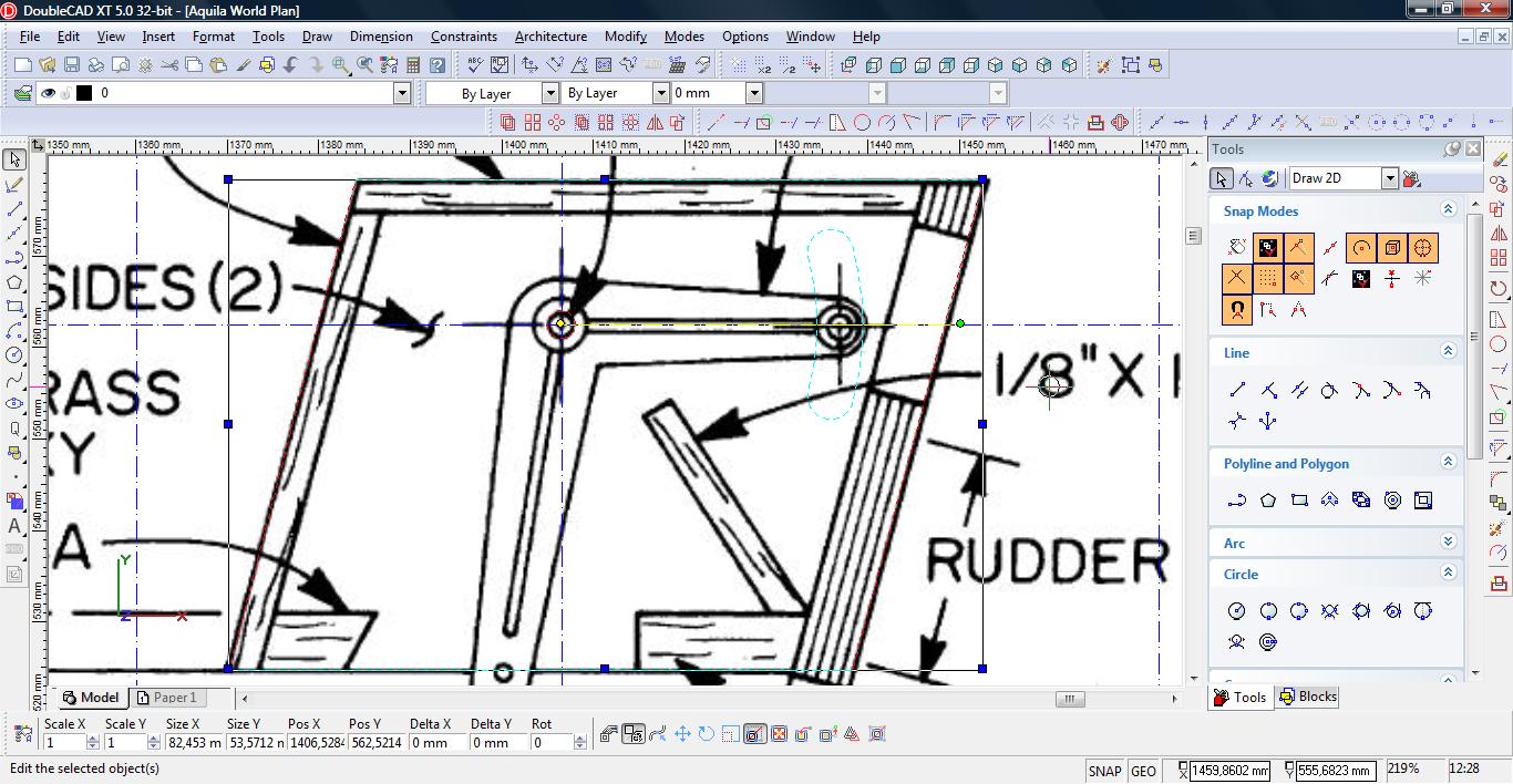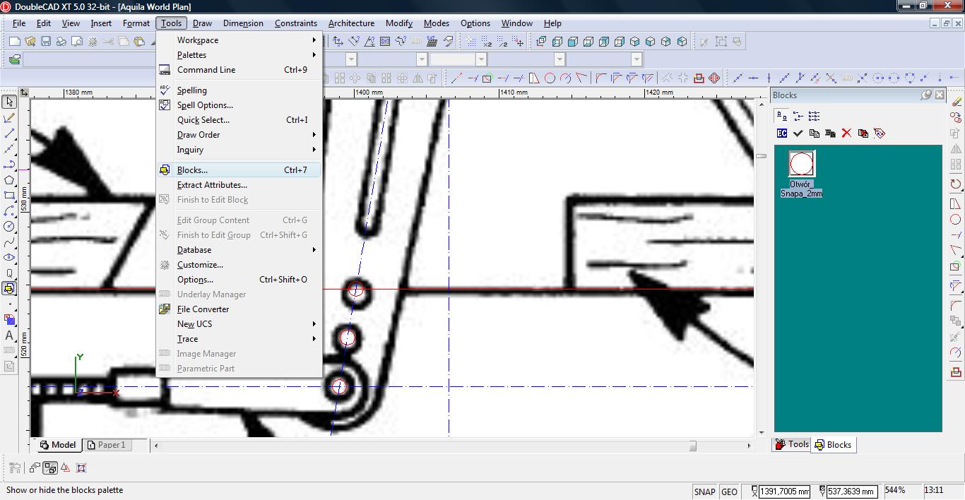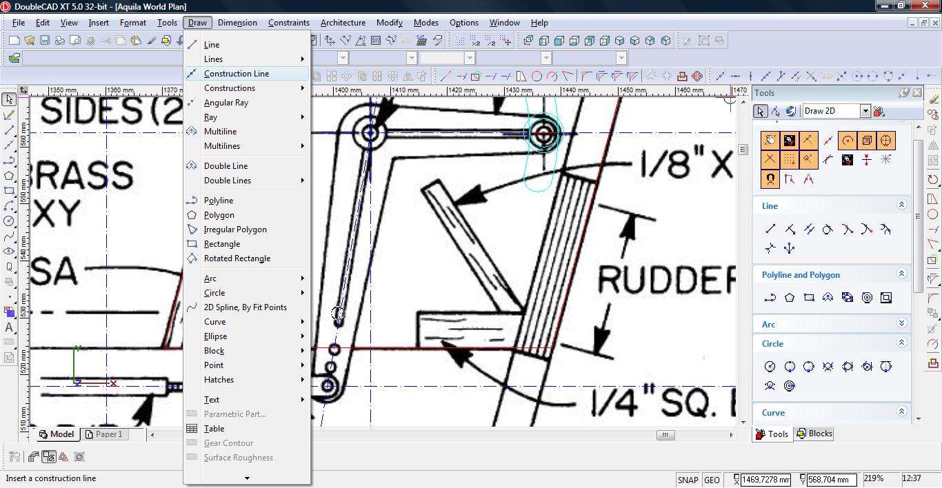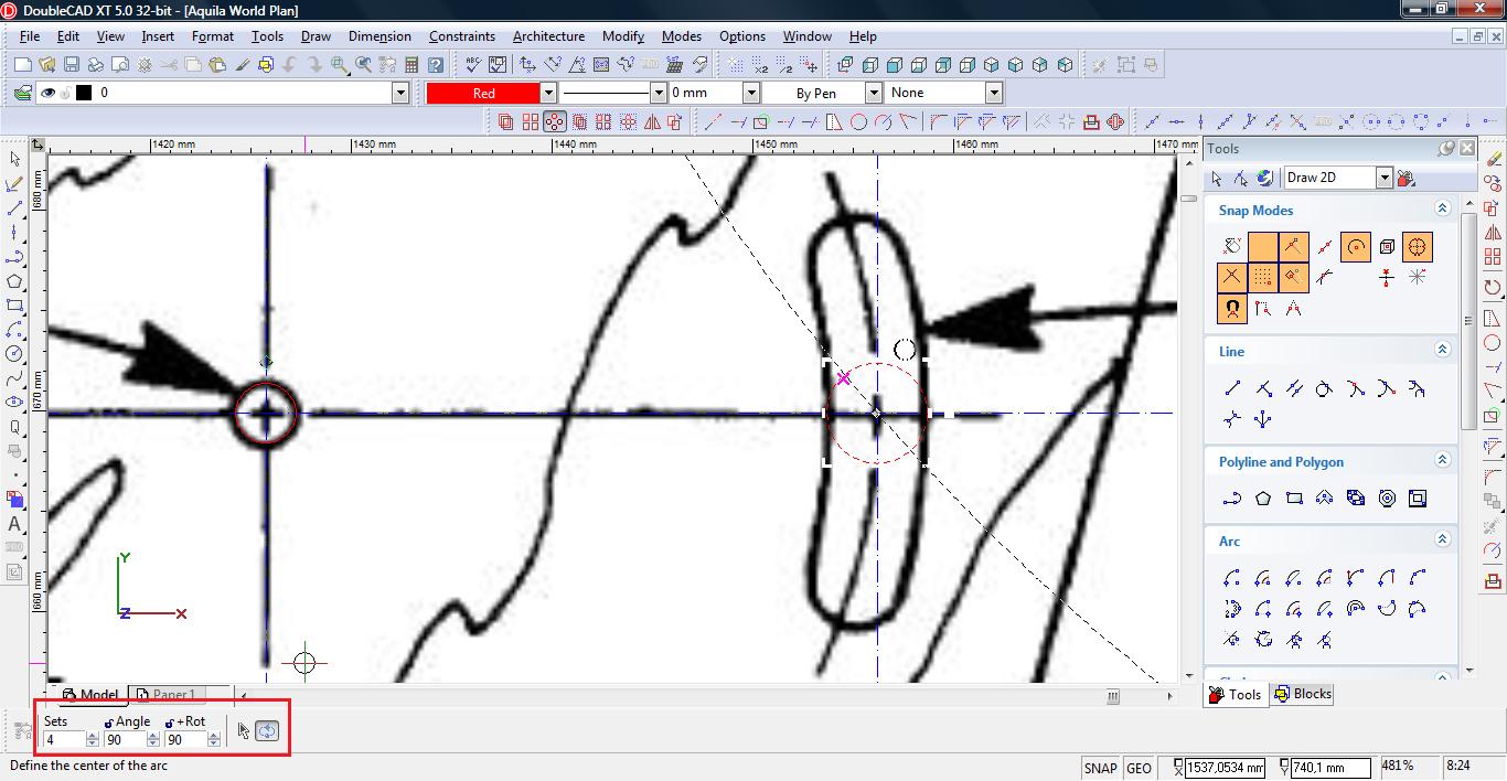 Teraz łączymy linię w pojedynczą polylinię. Wybieramy narzędzie Meet 2 Lines (Modify-> Meet 2 Lines)