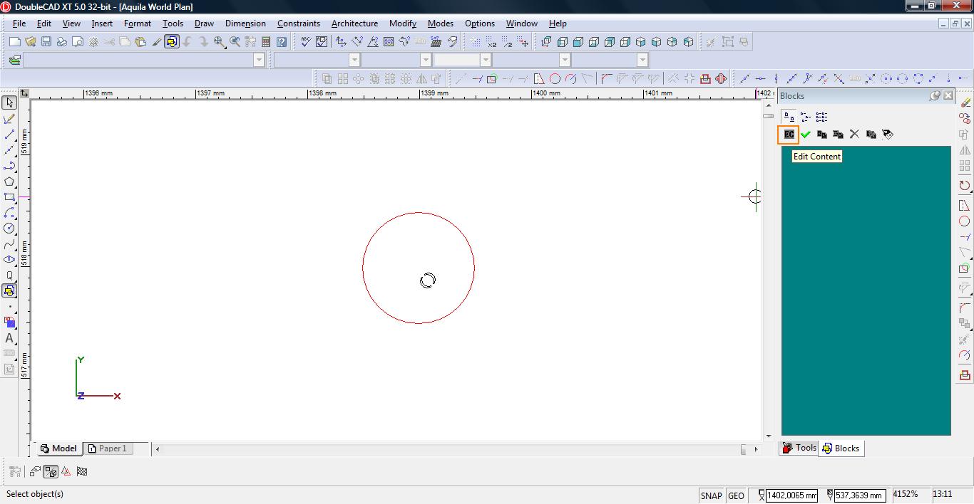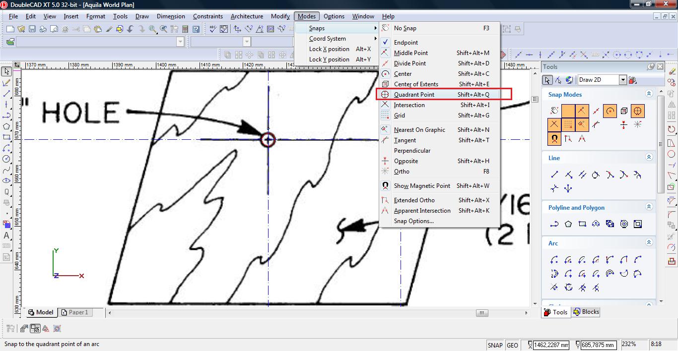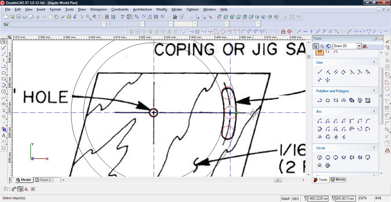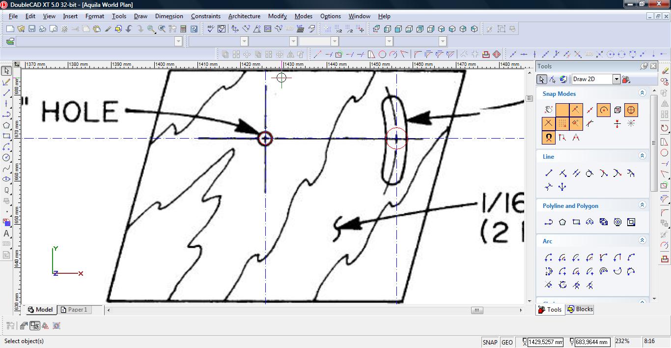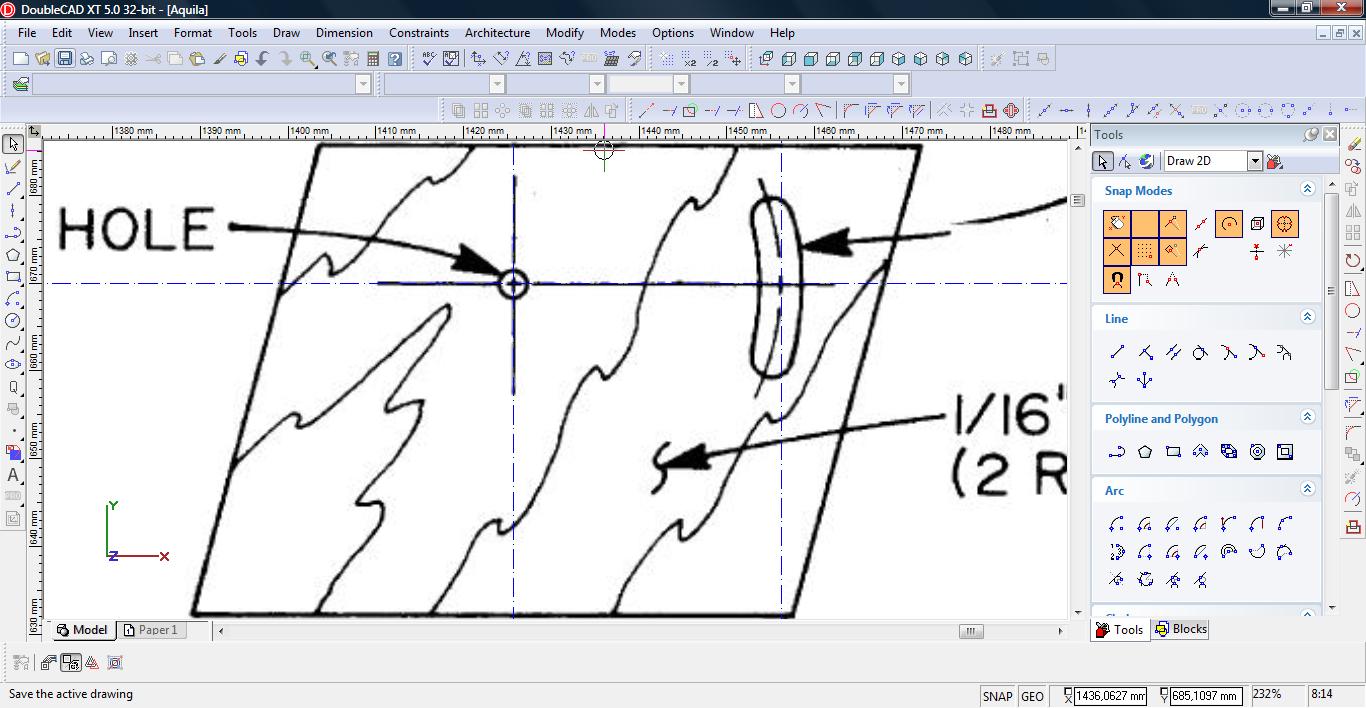 Teraz łączymy linię w pojedynczą polylinię. Wybieramy narzędzie Meet 2 Lines (Modify-> Meet 2 Lines)