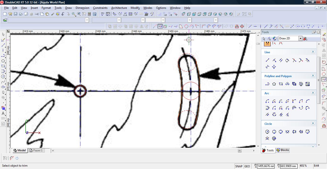 Na koniec, ucinamy naddatek, za pomocą narzędzia trim (Modify->Trim).