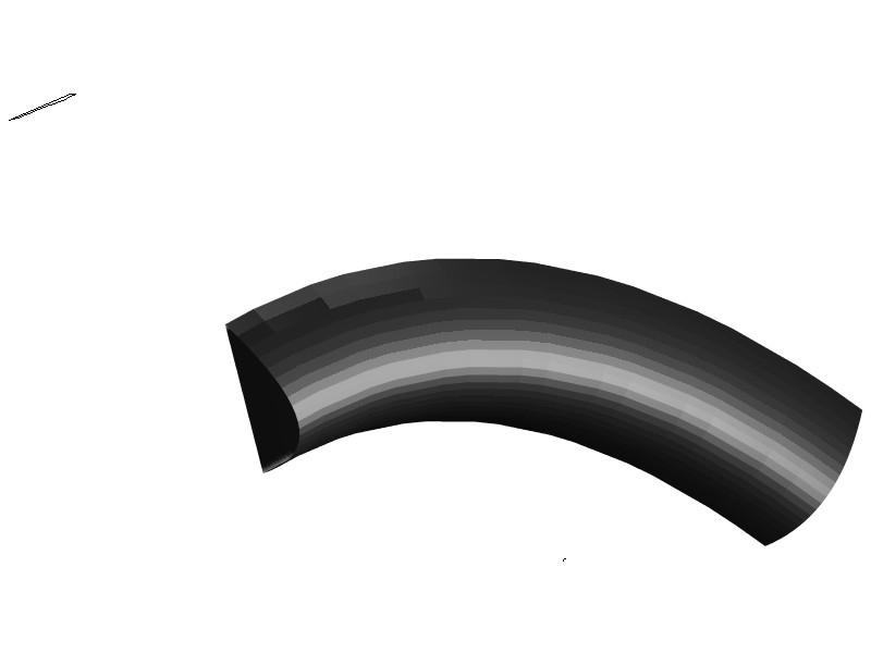 Następnie włączamy funkcję SWEEP i w pierwszej kolejności klikamy na przekrój a w drugiej na prowadnicę. Po kliknięciu na prowadnicę następuje wyrysowanie elementu o zadanym przekroju i kształcie zgodnym z prowadnicą.
