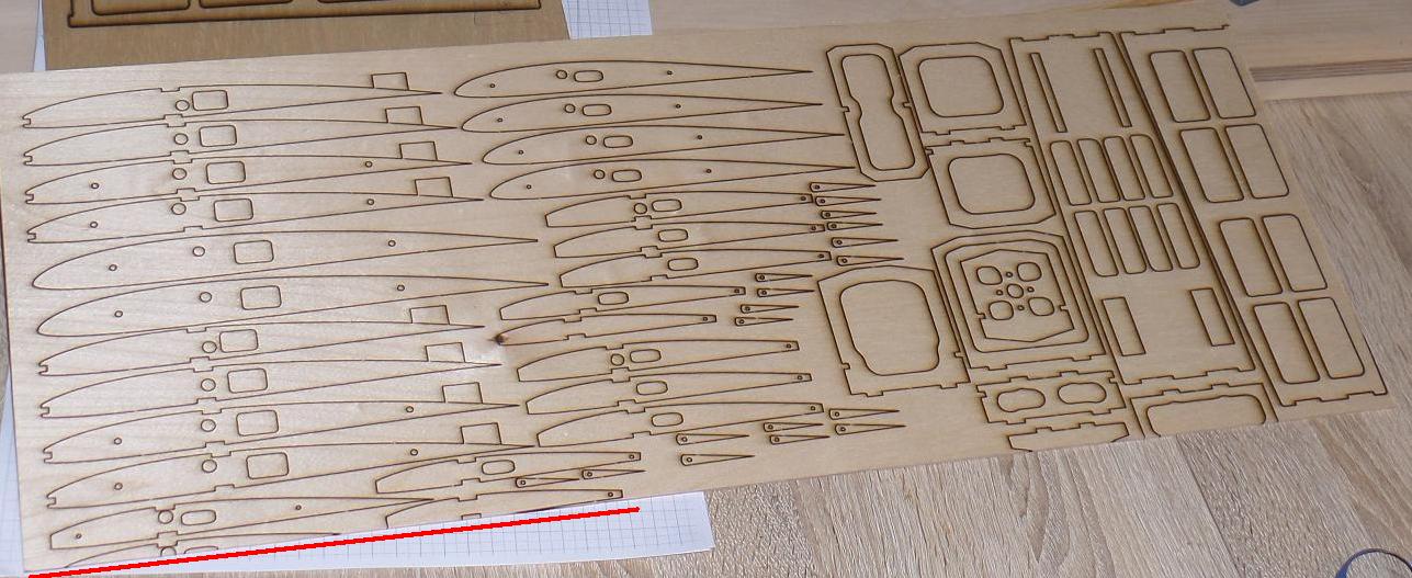 Dziś udało mi się dokleić wręgę silnikową w konstrukcji kadłuba oraz sklejkowe żeberka, sosnę 3x3 w natarciu i listwę spływu płata.